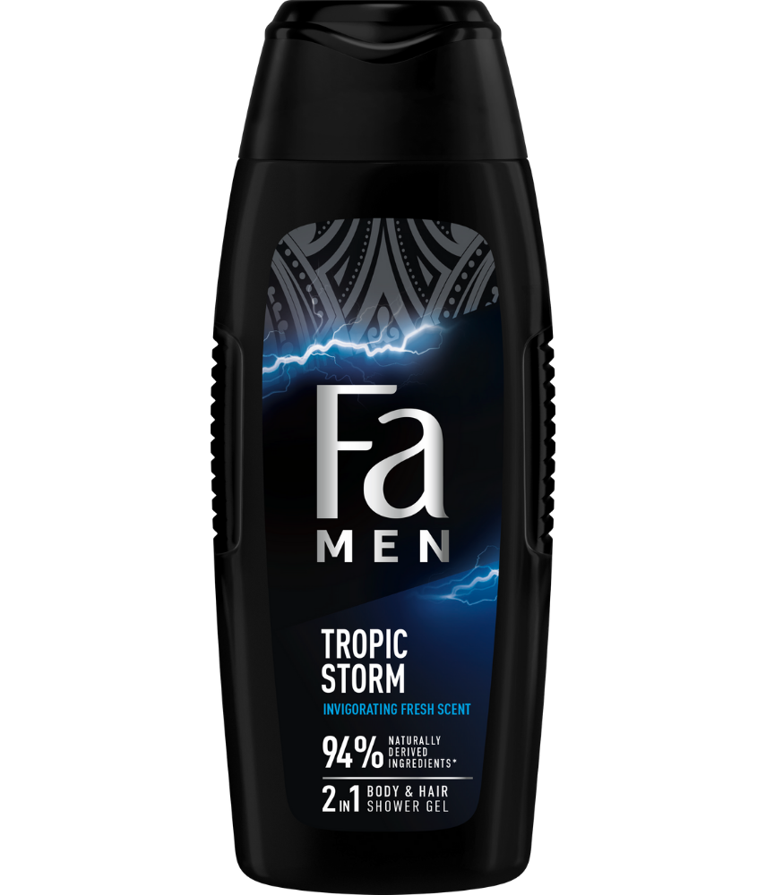 Poznaj nową odsłonę fascynującej świeżości! Wybierz Fa Men Tropic Storm żel pod prysznic z formułą 2w1: do efektywnego oczyszczania ciała i włosów o odświeżającym i pobudzającym zapachu różowego pieprzu i fasoli tonka, który zapewni Ci kompleksowe pobudzenie pod prysznicem. Odśwież swoje ciało & umysł i pozwól swoim zmysłom odkrywać nowe zakątki świata każdego dnia.