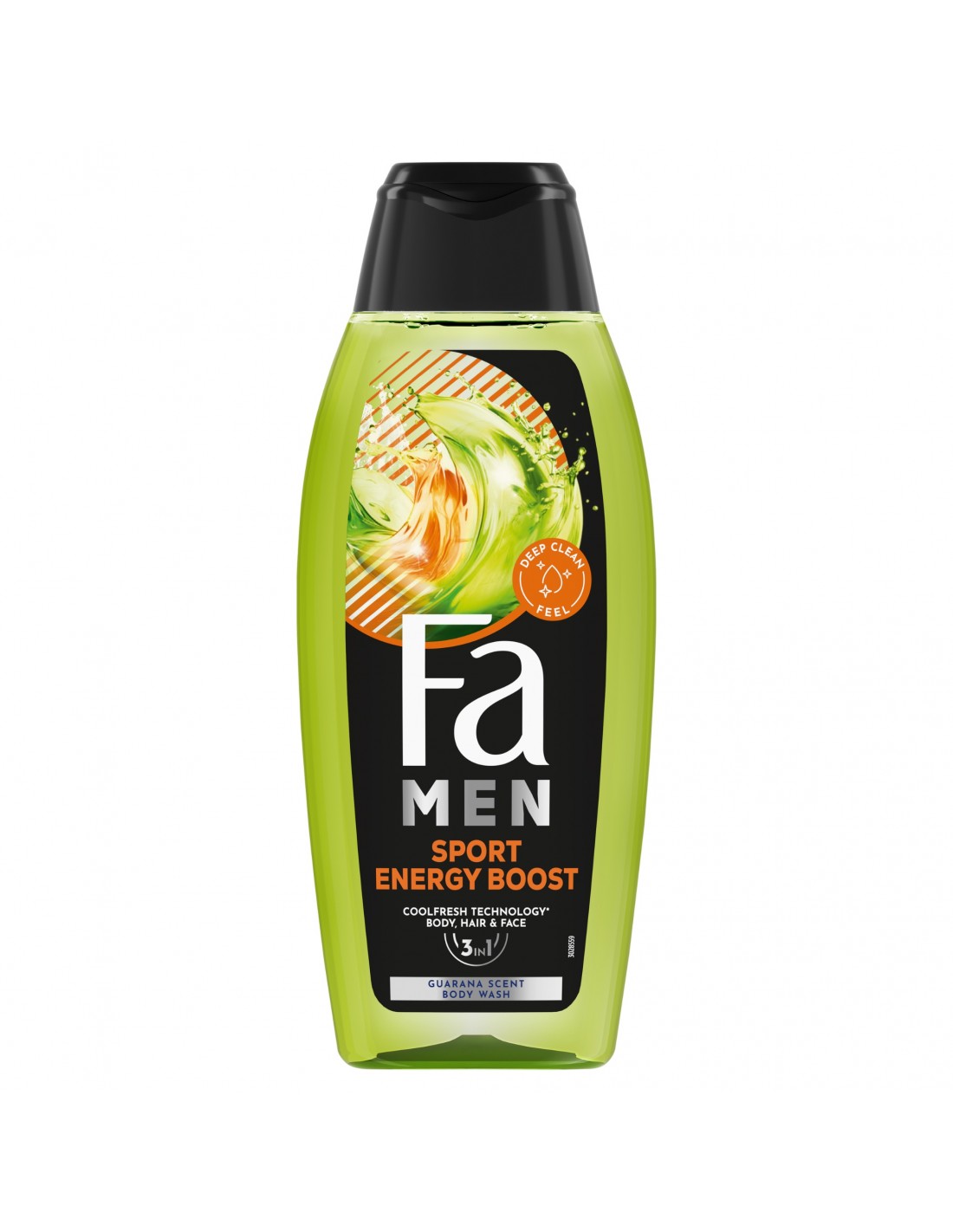 Poznaj nową odsłonę fascynującej świeżości! Wybierz Fa Men Sport Energy Boost żel pod prysznic z formułą 3w1: do efektywnego oczyszczania ciała, twarzy i włosów o odświeżającym i pobudzającym zapachu guarany i żeń-szenia, który zapewni Ci kompleksowe pobudzenie pod prysznicem. Odśwież swoje ciało & umysł i pozwól swoim zmysłom odkrywać nowe doznania każdego dnia.