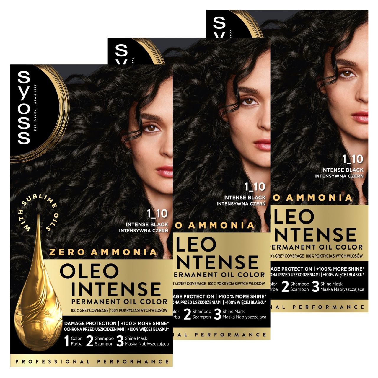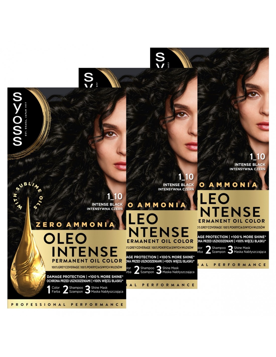 3x Syoss Oleo Intense 1-10 Intensywna Czerń – trwała farba do włosów bez amoniaku z pielęgnującymi olejkami