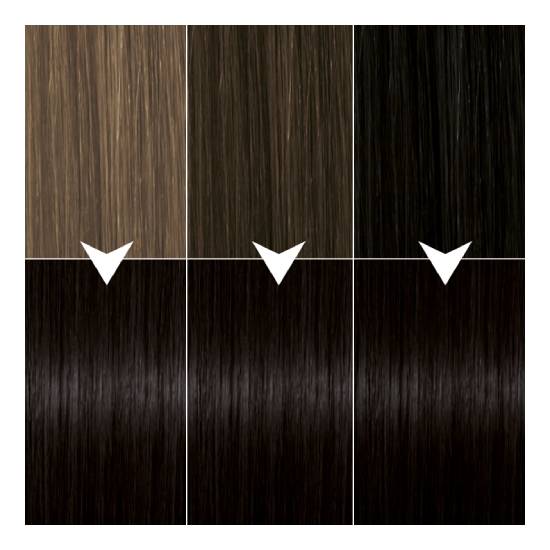 Precyzyjna aplikacja zapewnia profesjonalny efekt koloryzacji. Do włosów krótkich lub średniej długości użyj 1 opakowania Syoss Oleo Intense. Do włosów średniej długości, długich lub kręconych użyj 2 opakowań Syoss Oleo Intense. Ten odcień jest odpowiedni dla włosów w tonacji od ciemnego blondu po czerń. 100% pokrycia siwych włosów.