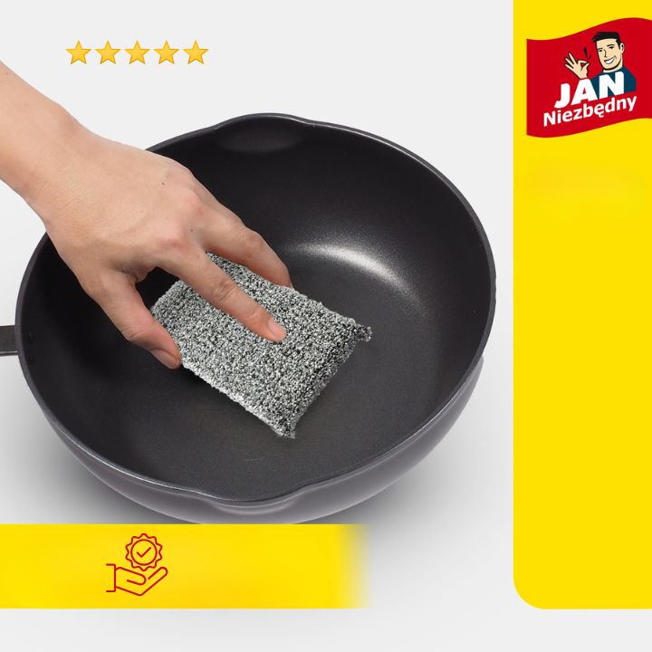 ✨ Delikatny, ale skuteczny: bez problemu poradzi sobie z zabrudzeniami na teflonie, ceramice, szkle czy porcelanie, nie zostawiając najmniejszej rysy.