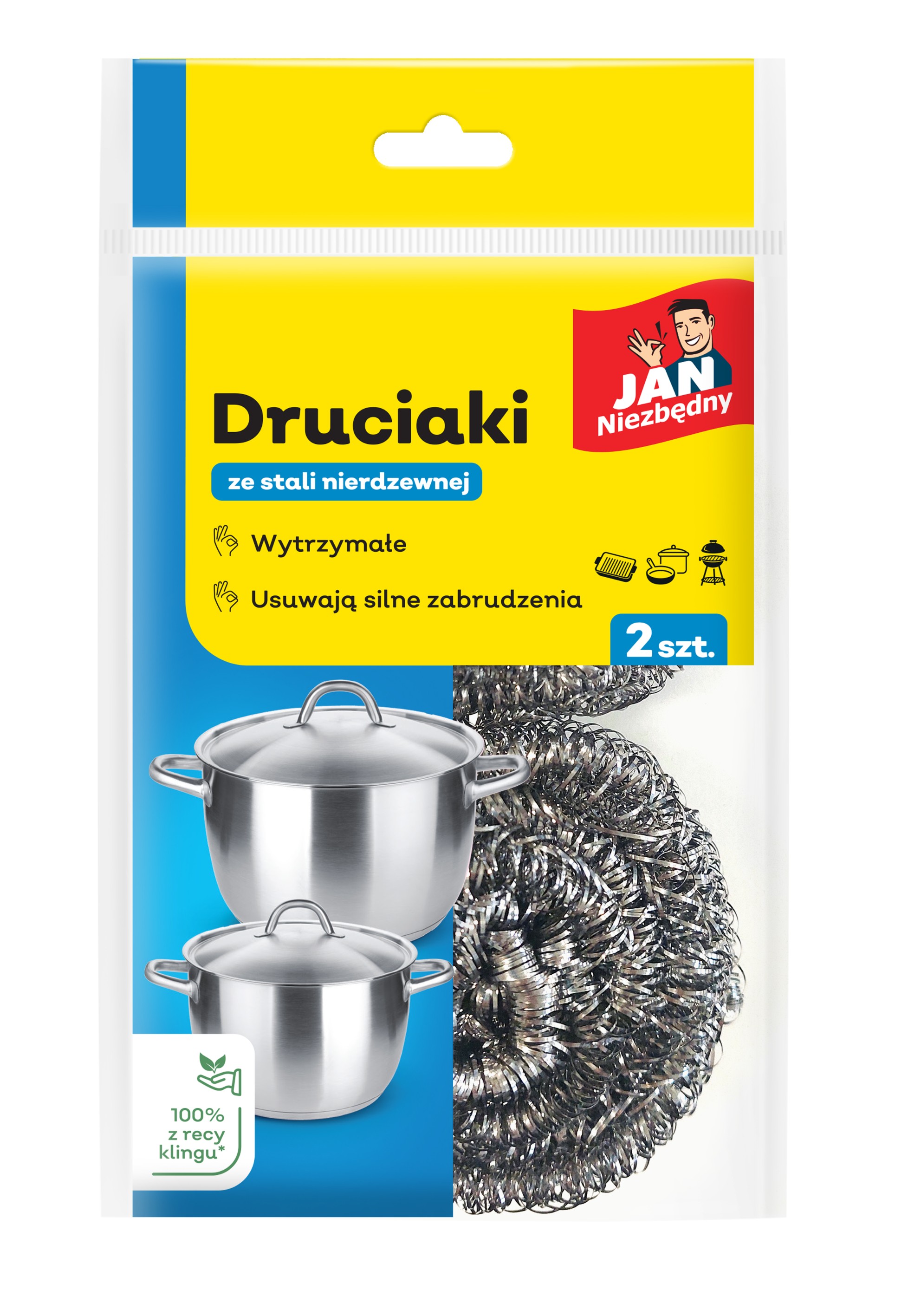 Druciaki ze stali nierdzewnej JAN Niezbędny to doskonałe rozwiązanie do trudnych prac i usuwania uporczywych zabrudzeń z grilli, patelni czy garnków. Są niezwykle trwałe i wytrzymałe, zapewniając długotrwałe użytkowanie.