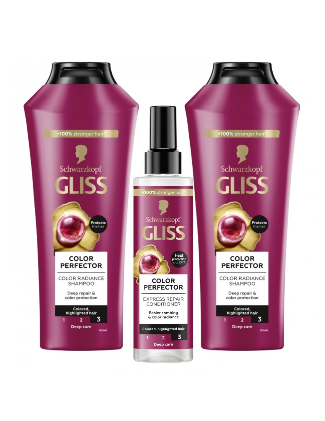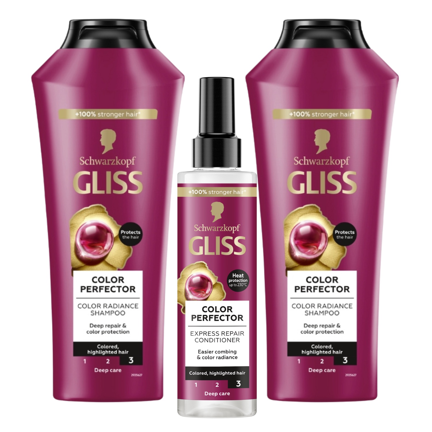 Zestaw pielęgnacyjny Gliss Colour Perfector do włosów farbowanych, tonowanych i rozjaśnianych: szampon do włosów 2x, ekspresowa odżywka