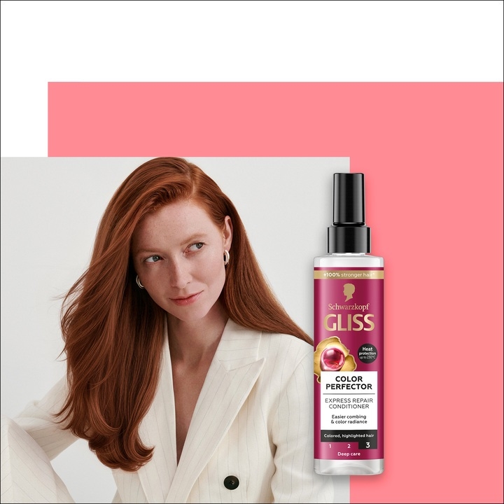 Odżywka w sprayu color perfector zapewnia ochronę koloru i długotrwały blask do 13 tygodni*, zapewniając intensywne odżywienie oraz pozostawiając włosy gładkie i lśniące.