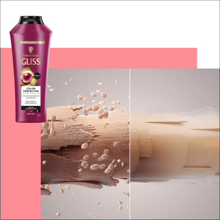 Szampon Gliss zapewnia głęboką naprawę, ochronę koloru do 13 tygodni i długotrwały blask koloru.