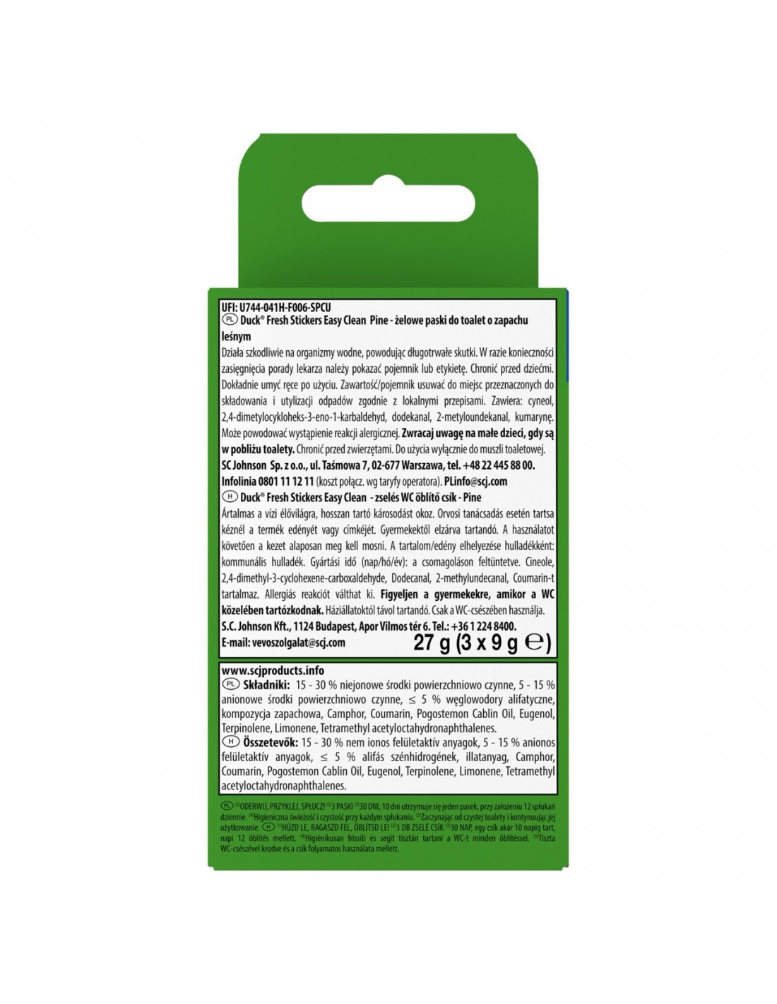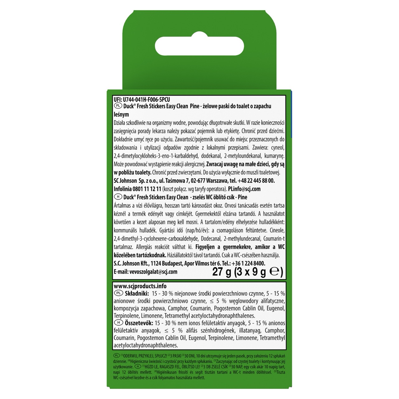 Duck Fresh Stick to żelowe paski do toalet o działaniu czyszczącym, które zapobiegają osadzaniu się kamienia. Czyszcząca aktywna piana przy każdym spłukaniu zapewnia świeżość i długotrwały połysk twojej toalecie. Działa aż do 4 tygodni.