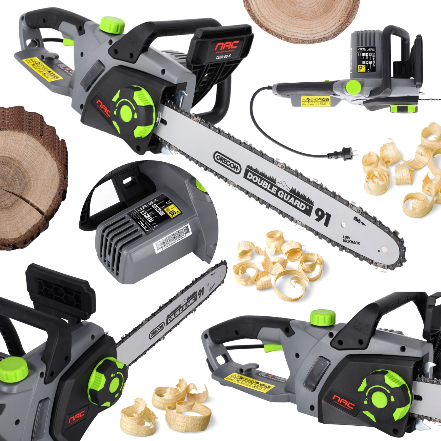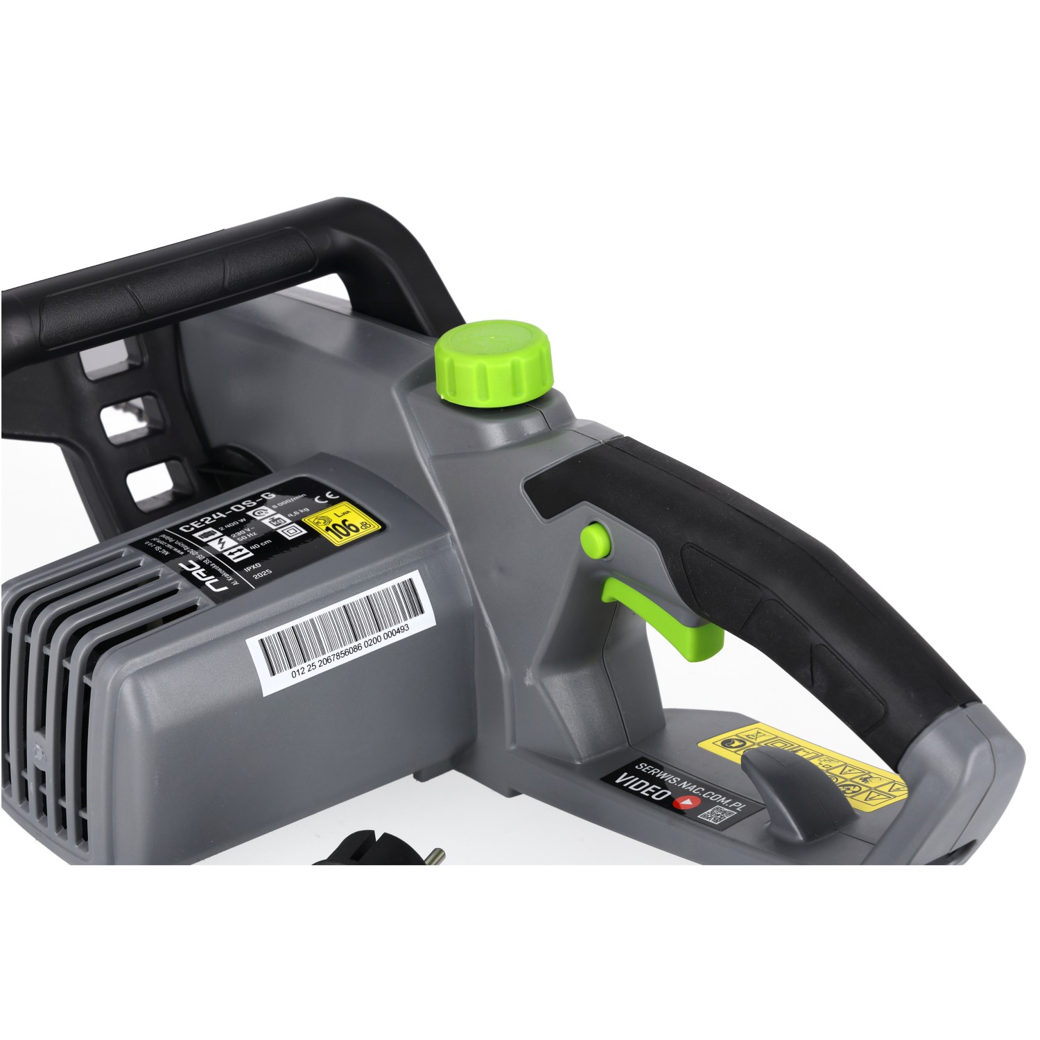 Wybierz elektryczną pilarkę łańcuchową NAC CE24-OS-G - to połączenie potężnej mocy 2400 W, niezawodności amerykańskiej marki OREGON oraz maksymalnej wygody użytkowania dzięki systemowi SDS i technologii tłumienia drgań.