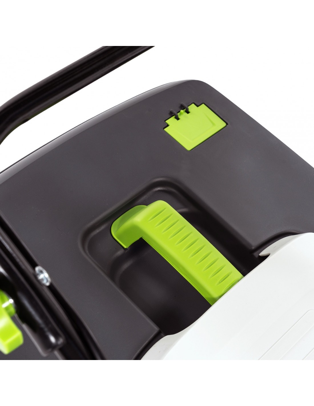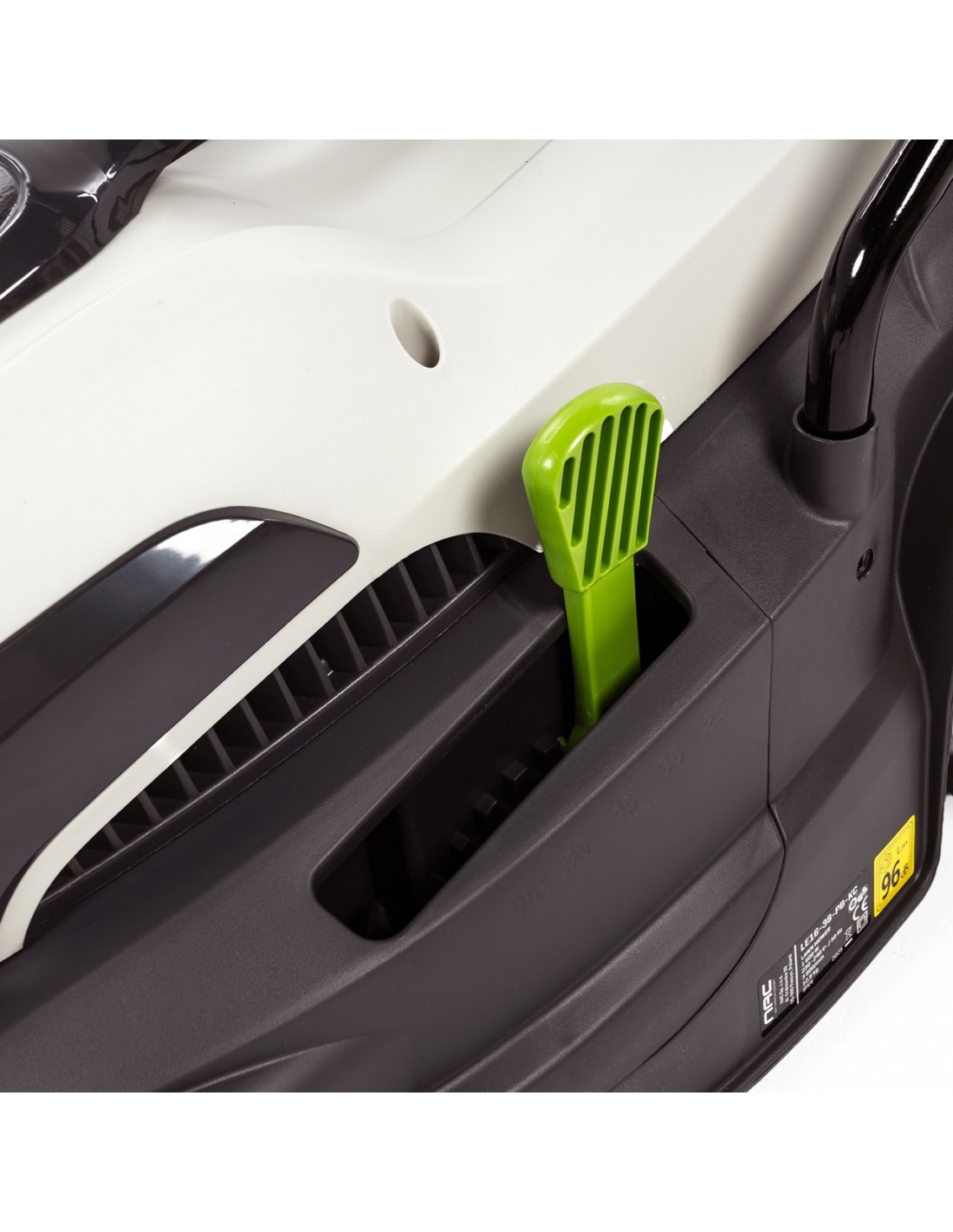 Kosiarka posiada kosz plastikowy o pojemności 45 litrów z plastikową pokrywą przeciwpyłową oraz wskaźnikiem zapełnienia kosza. Wygodna rączka sprawia, że opróżnianie kosza jest bezproblemowe.