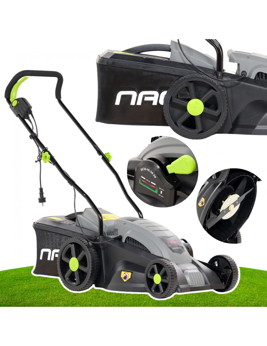 Mocna kosiarka elektryczna NAC LE16-38-PI-G o szerokości koszenia 38 cm z funkcją mielenia