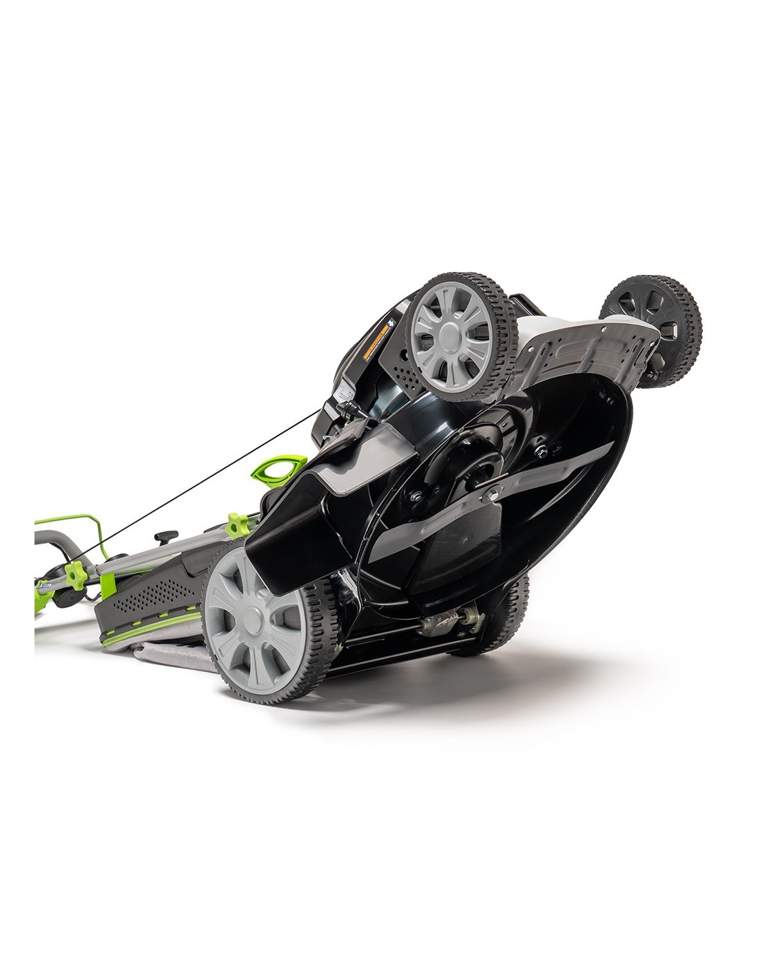 System mycia obudowy pozwala w prosty i szybki sposób umyć korpus kosiarki- wystarczy podłączyć wąż ogrodowy z wodą do króćca na obudowie oraz uruchomić kosiarkę.