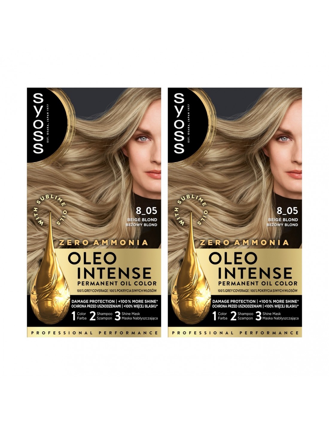 2x Syoss Oleo Intense 8-05 Beżowy Blond – trwała farba do włosów bez amoniaku z pielęgnującymi olejkami