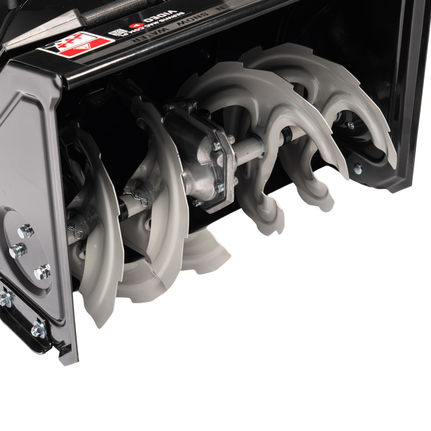 W pierwszym etapie wytrzymały, stalowy frez ślimakowy z łatwością rozdrabnia nawet twardy, zbity śnieg, przygotowując go do wyrzutu. W drugim – śnieg trafia do komina i zostaje wyrzucony na imponującą odległość nawet 11 metrów.