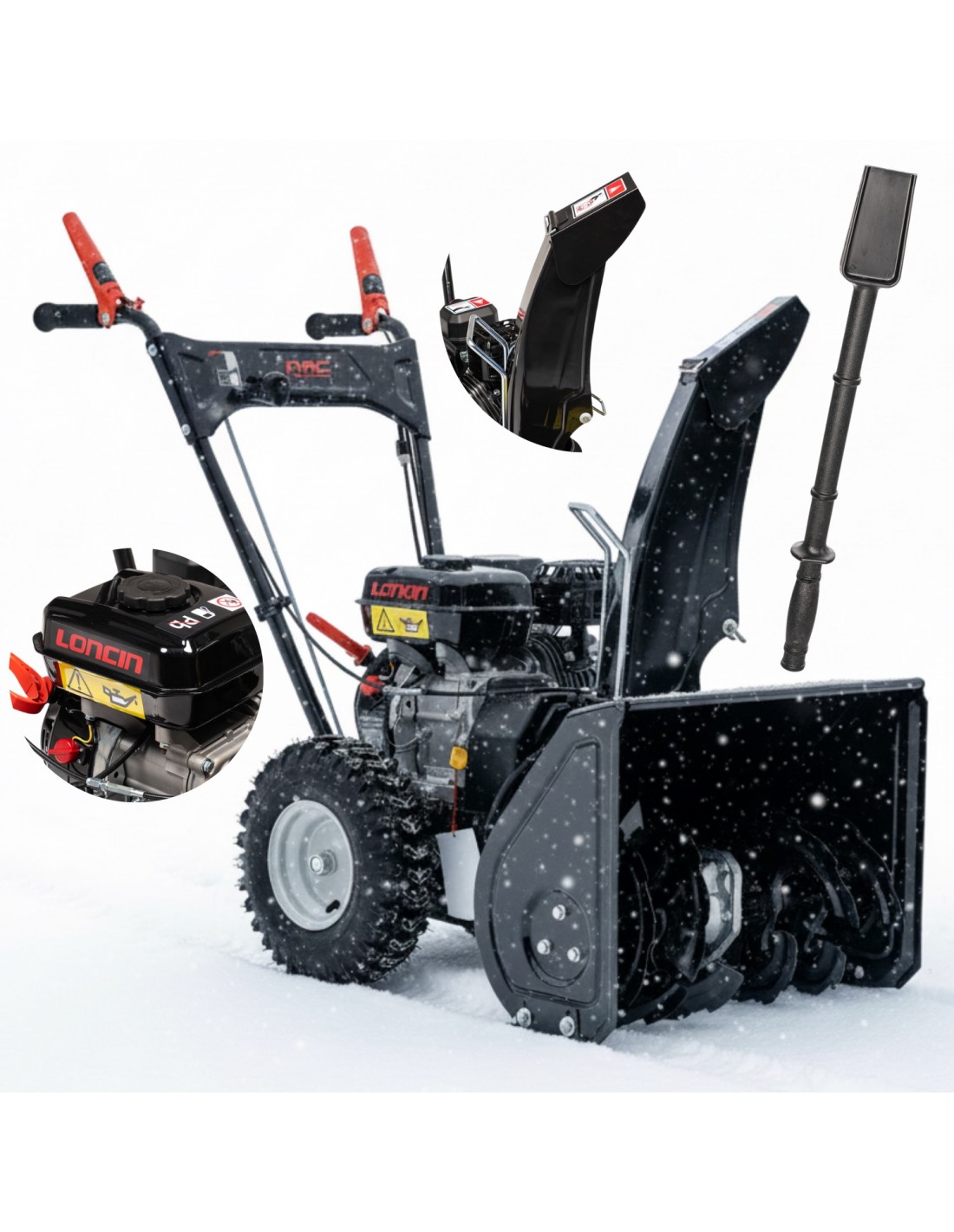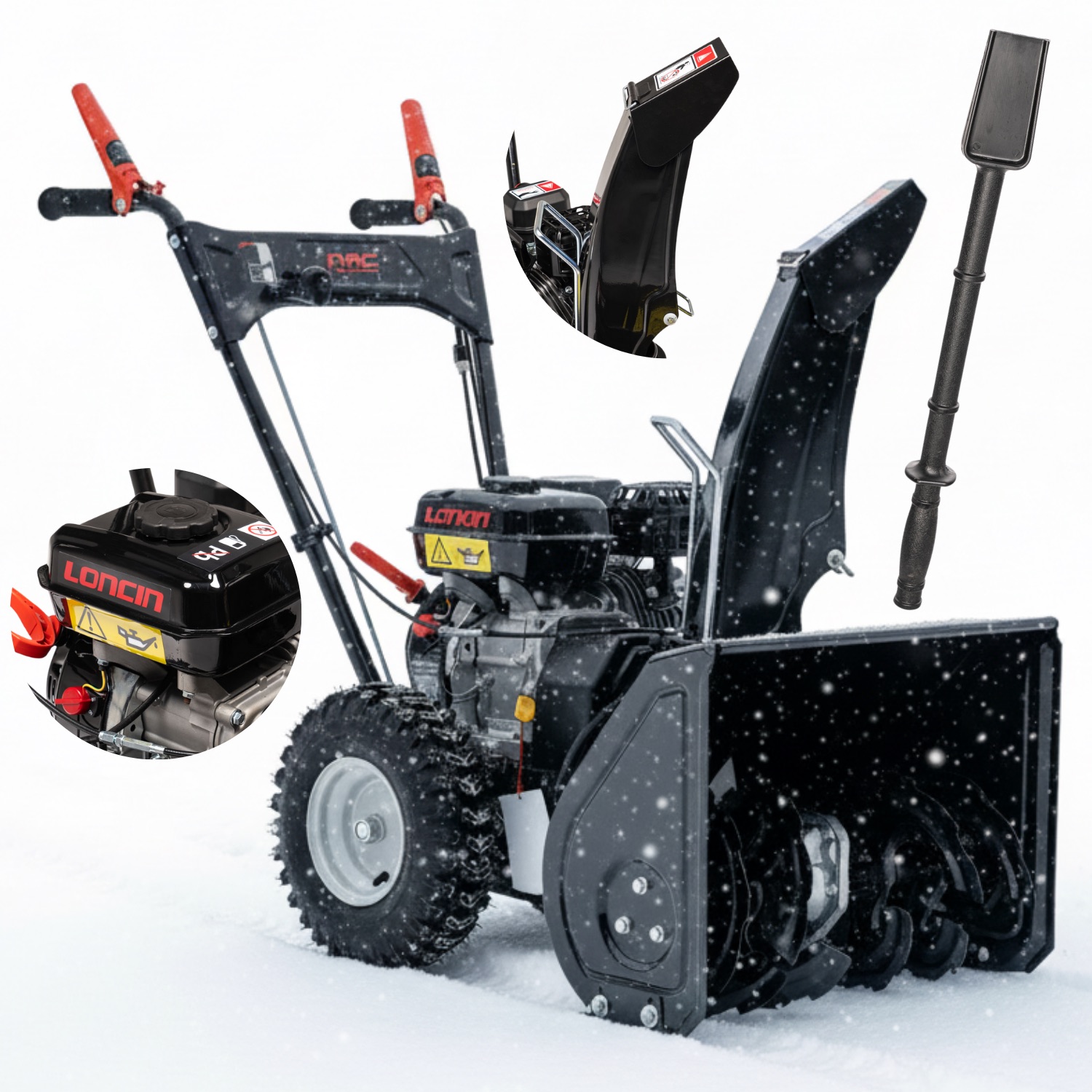 ✅ SILNIK LONCIN H200 196 CM3 | ✅ NAPĘD NA KOŁA | ✅ 4 BIEGI DO PRZODU | ✅ 1 BIEG DO TYŁU | ✅ PŁOZY BOCZNE | ✅ DWUSTOPNIOWE ODŚNIEŻANIE | ✅ SZEROKOŚĆ ROBOCZA 56 CM | ✅ WYRZUT ŚNIEGU NA 11 M