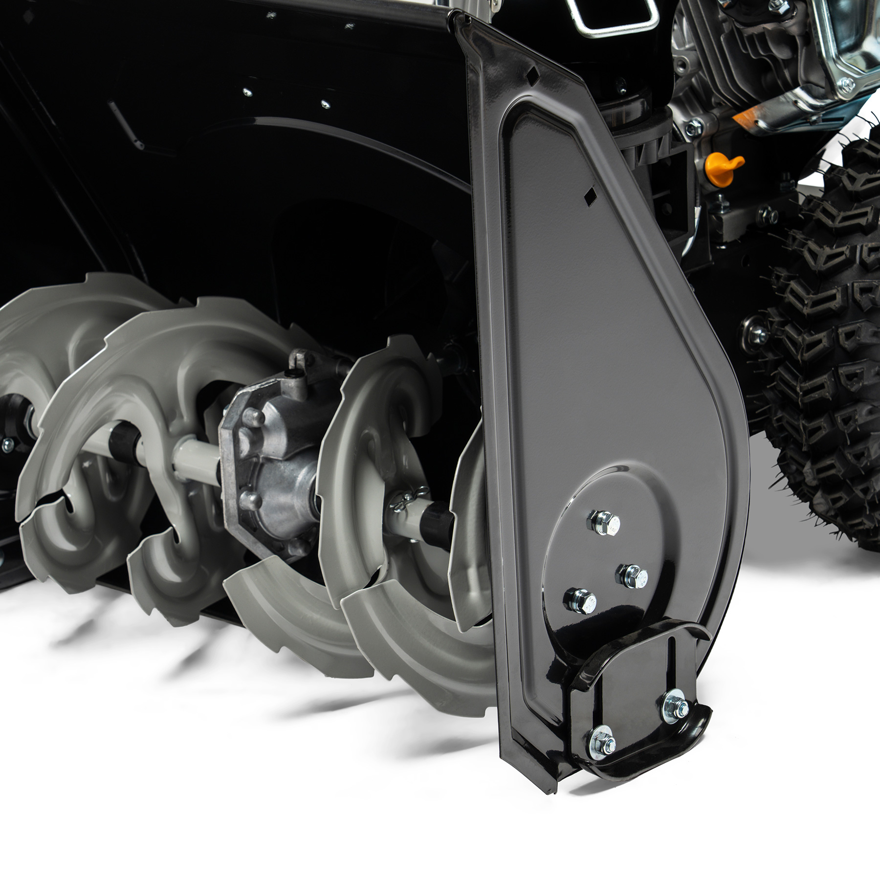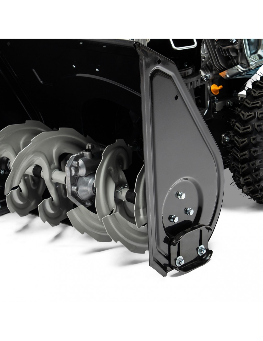 Pierwsza faza odśnieżania realizowana jest przez wytrzymały podajnik ślimakowy, który gwarantuje skuteczne zbieranie śniegu o wysokości do 51 cm oraz szerokości roboczej 61 cm.
