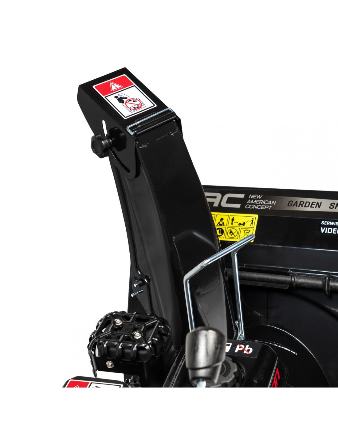 Regulowany kierunek wyrzutu śniegu w dwóch płaszczyznach pozwala na kierowanie odrzucanego śniegu zawsze w tę samą stronę, bez względu na kierunek jazdy odśnieżarki. Uchwyt do regulacji kierunku wyrzutu znajduje się na kominie.