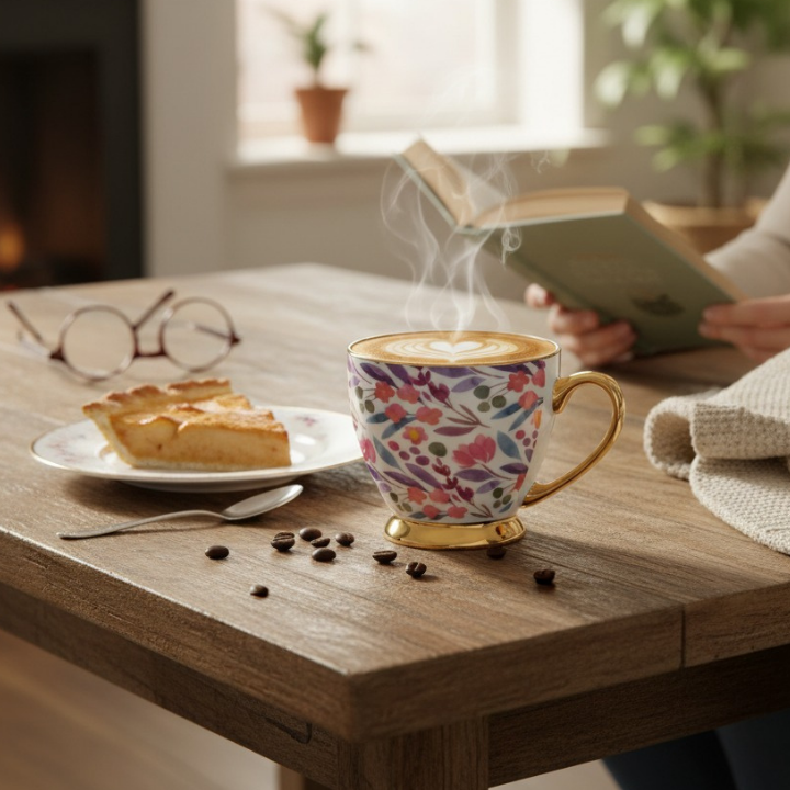Porcelanowa filiżanka w kwiaty jest eleganckim dodatkiem zarówno do klasycznej kuchni, jak i nowoczesnego salonu.