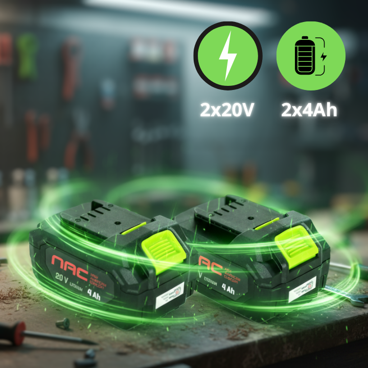 Zapomnij o ograniczeniach jednego akumulatora. Nasze rozwiązanie to podwójna siła i absolutna ciągłość pracy! W zestawie otrzymujesz DWA inteligentne akumulatory 20V o pojemności 4Ah☄️