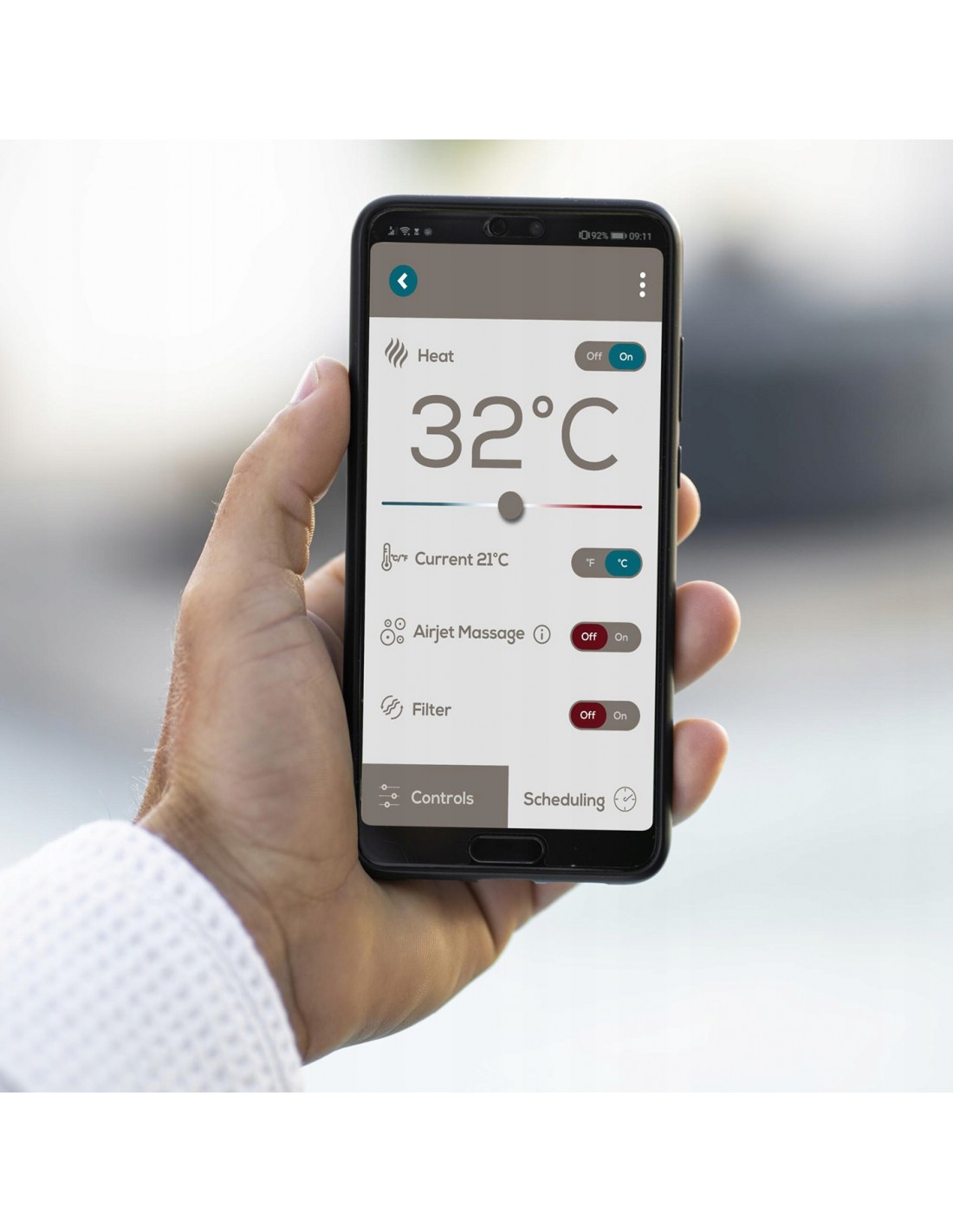 Tym wyjątkowym spa można sterować za pomocą urządzenia inteligentnego za pośrednictwem aplikacji Bestway Smart Hub ™. Ta innowacja sprawia, że spa Milan jest jednym z najwygodniejszych na rynku. Aplikacja umożliwia ustawienie idealnej temperatury w spa, aktywację timera, uruchomienie filtra wody i sterowanie systemem masażu AirJet Plus - wszystko z poziomu ręki.