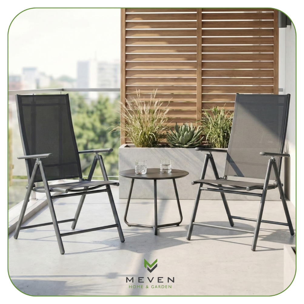 Zestaw dwóch wielopozycyjnych foteli Daytona MEVEN w eleganckiej szarości to Twoja przepustka do beztroskiego relaksu na świeżym powietrzu.