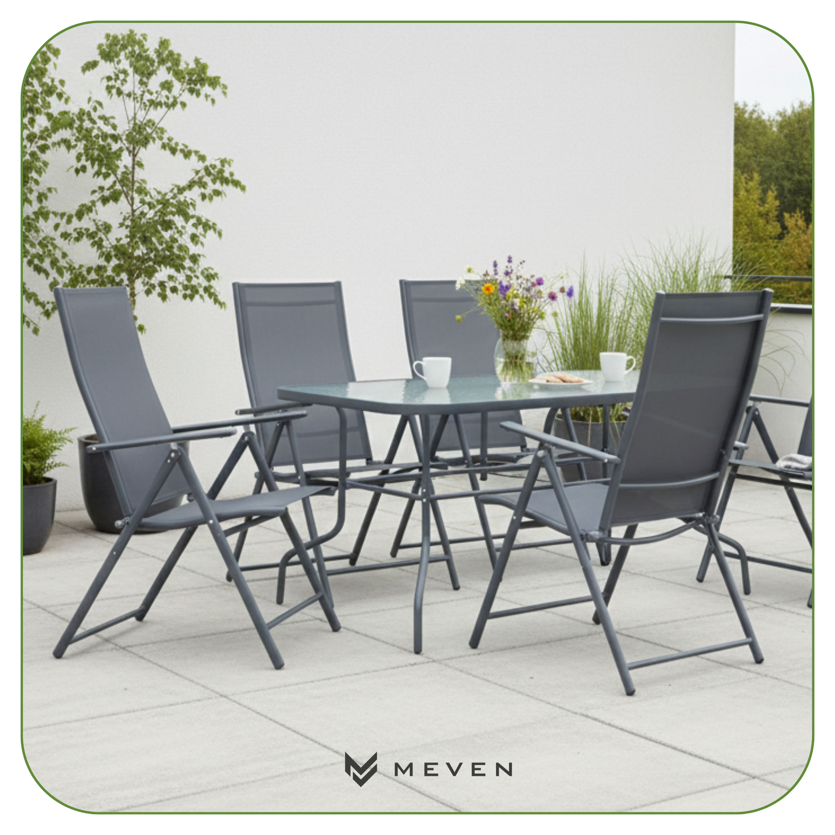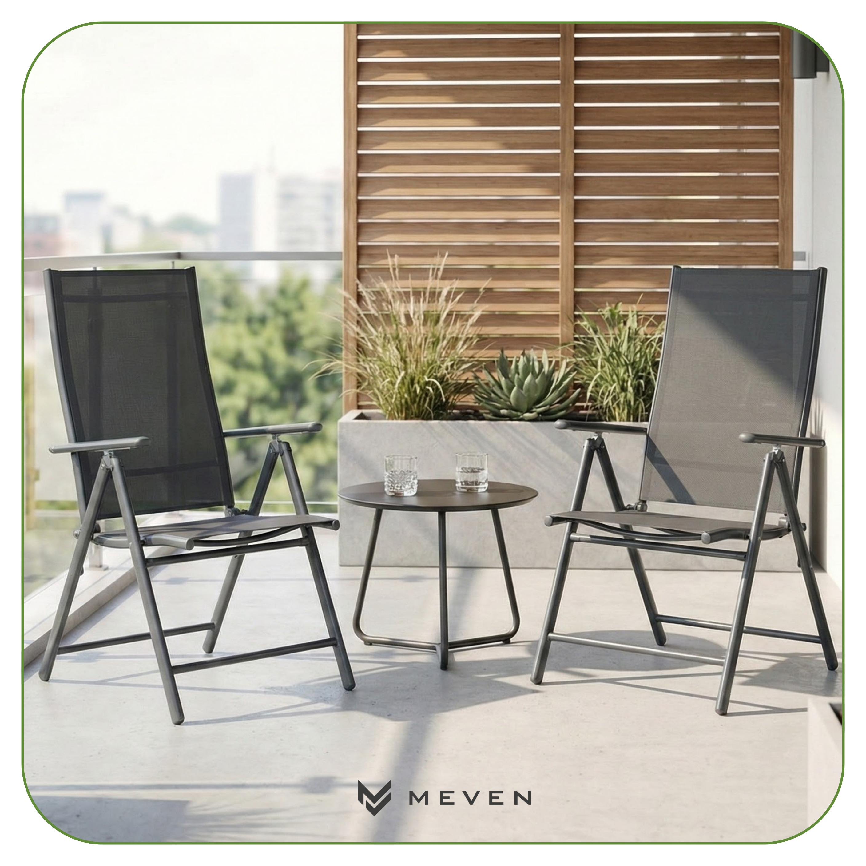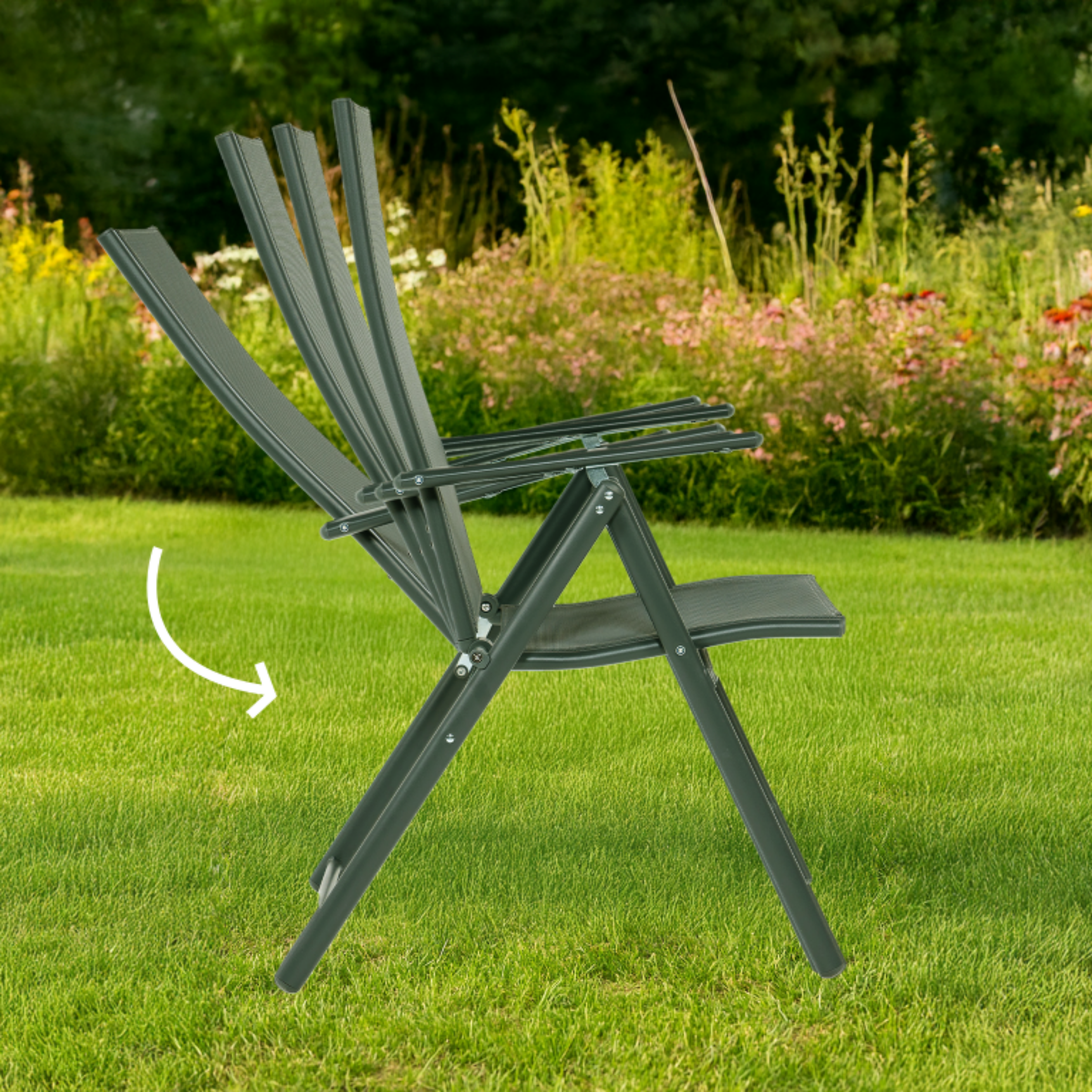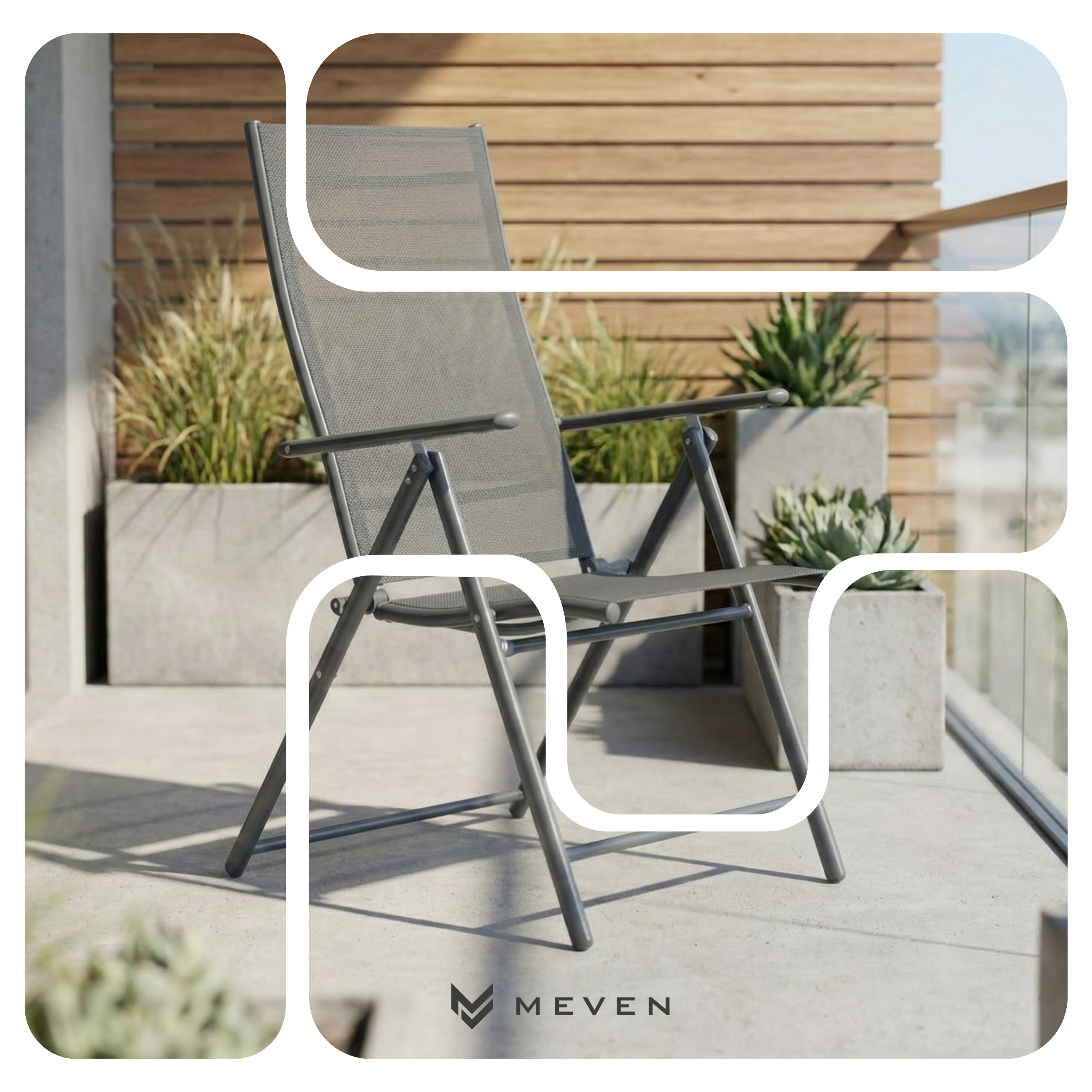 Zestaw dwóch wielopozycyjnych foteli Daytona MEVEN w eleganckiej szarości to Twoja przepustka do beztroskiego relaksu na świeżym powietrzu.