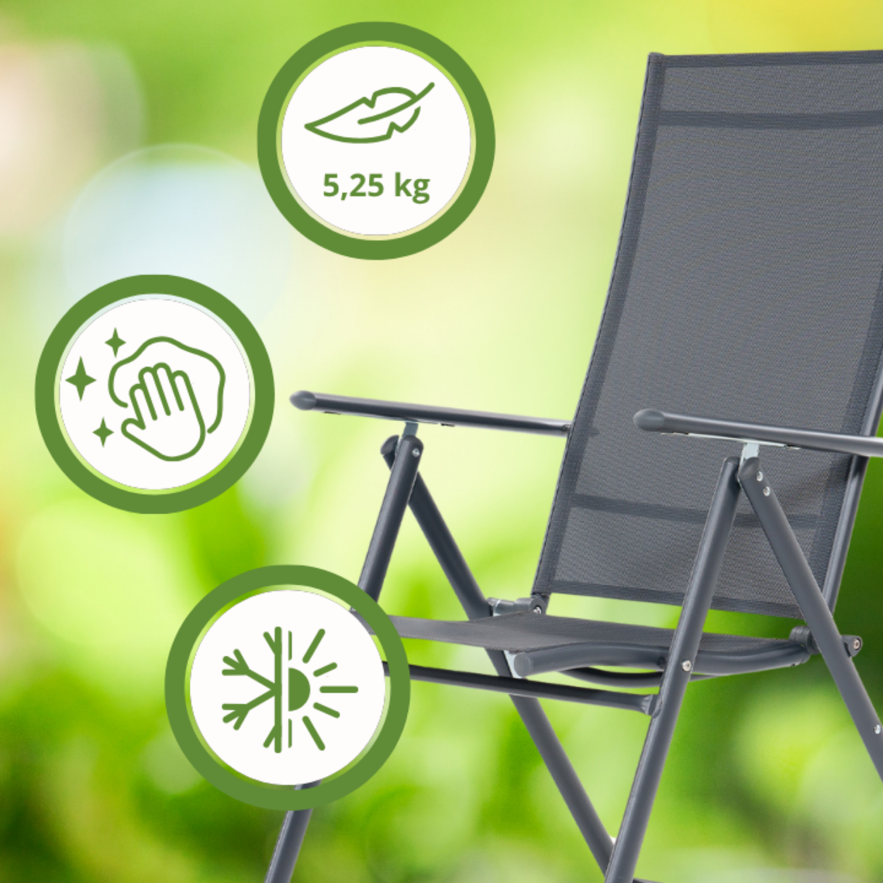 ❇️ Siedzisko wykonane z oddychającej tkaniny Textilene doskonale dopasowuje się do sylwetki, zapewniając uczucie chłodu i komfortu.