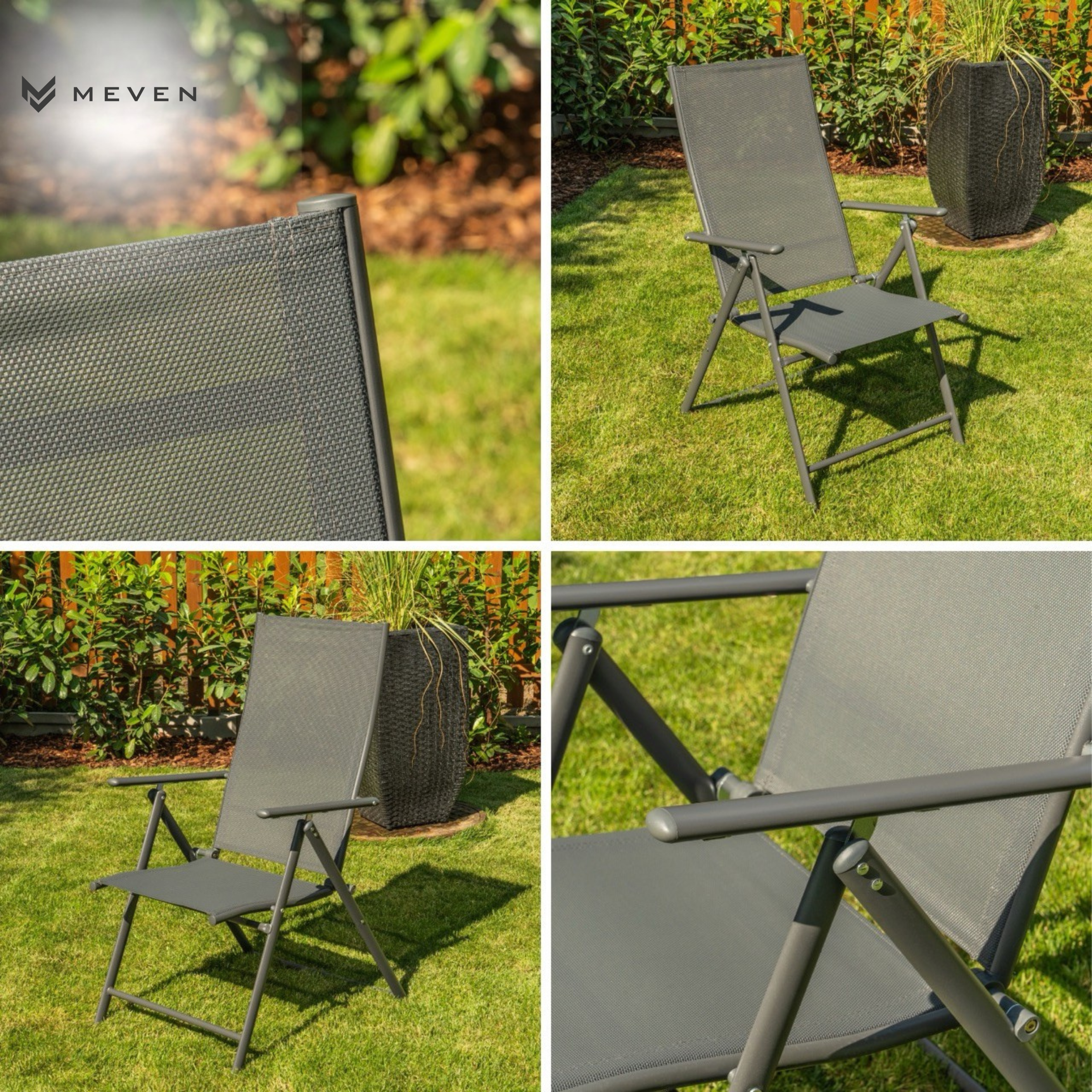 Fotel ogrodowy składany z regulowanym oparciem na taras balkon MEVEN Daytona szary, 2 szt.