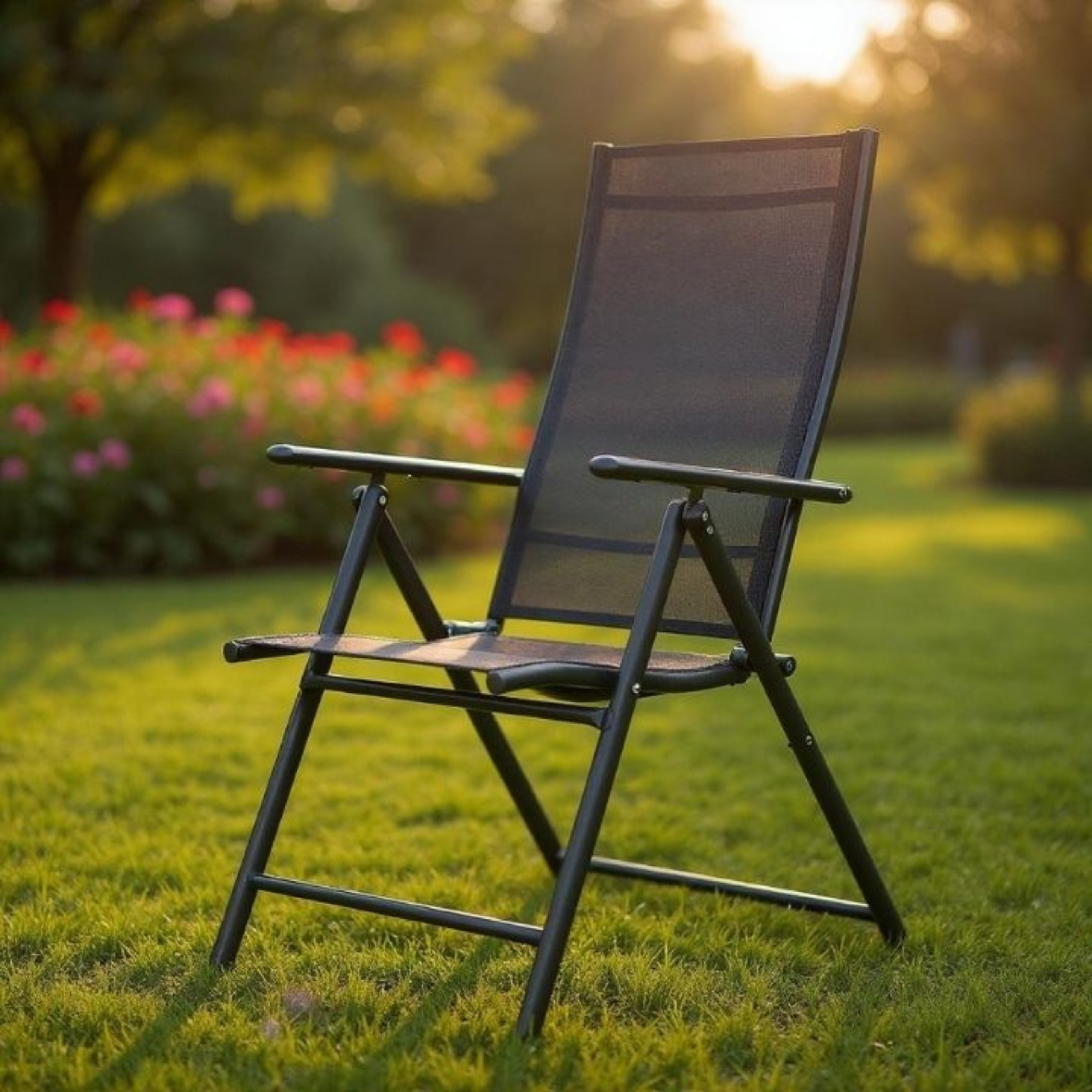 ❇️ Regulowane oparcie razem z wygodnymi podłokietnikami sprawiają, że nawet wielogodzinny wypoczynek na zewnątrz staje się czystą przyjemnością.