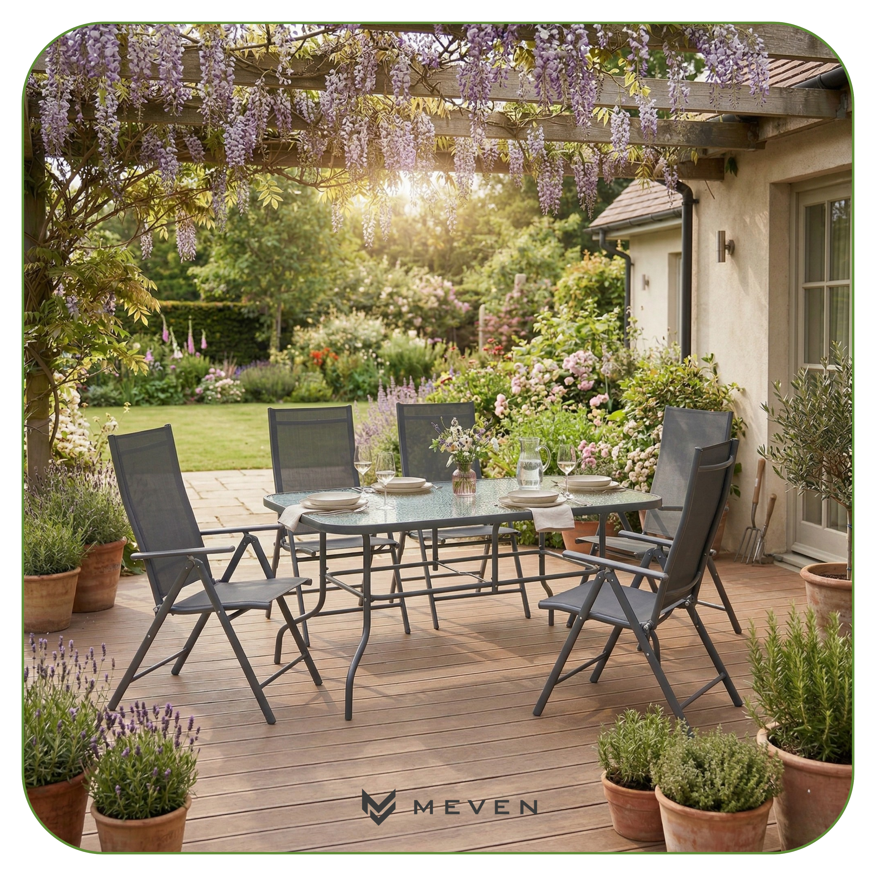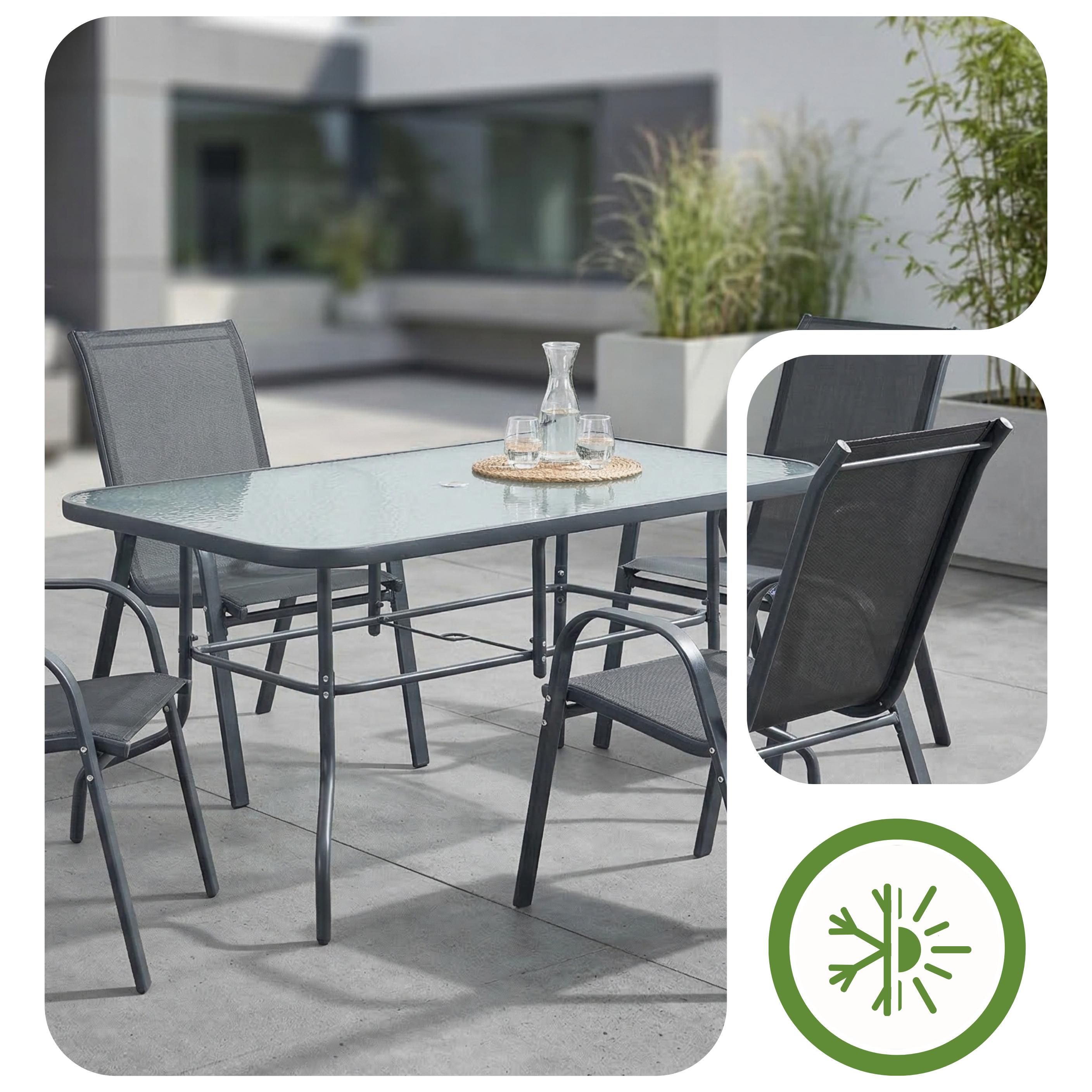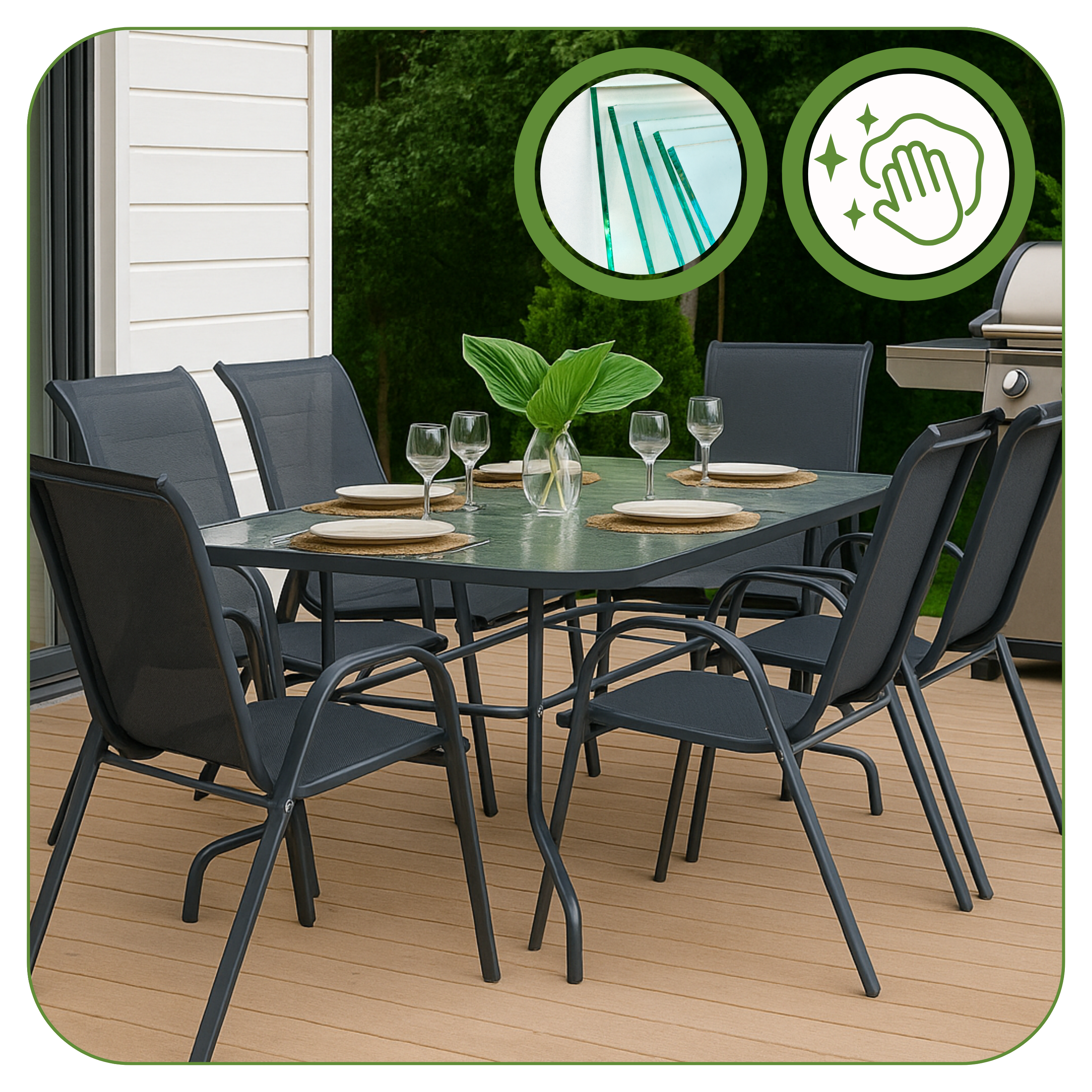 ☀️ Hartowany blat opiera się zarysowaniom i zmiennym warunkom pogodowym.