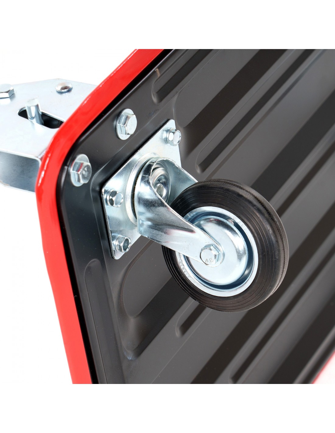 To szczególnie przydatne podczas pracy na zewnątrz, w magazynach wielopoziomowych lub przy transporcie na schodach z najazdem. Stabilność wózka pozostaje zachowana, a Ty zyskujesz pełną kontrolę nad ładunkiem.