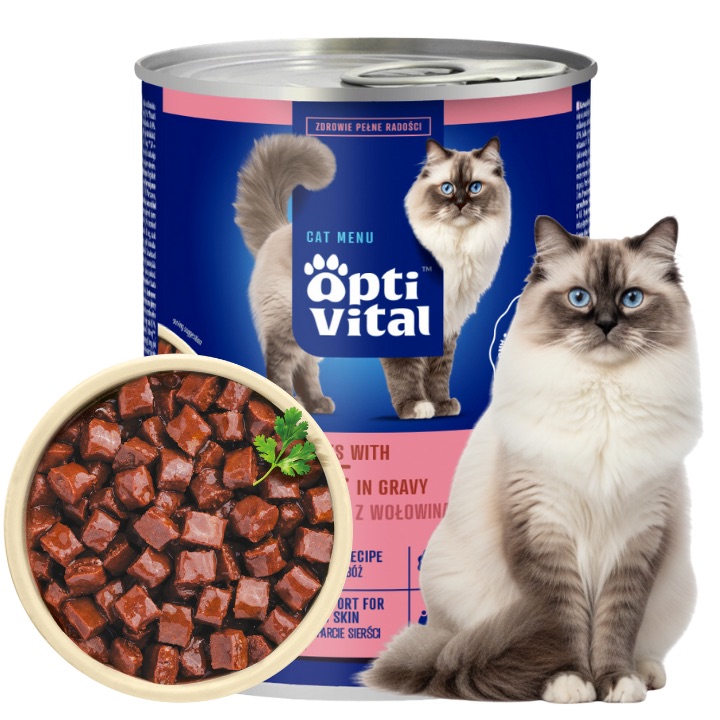 OptiVital Mokra karma dla dorosłych kotów wszystkich ras w puszce z wołowiną w sosie 415g