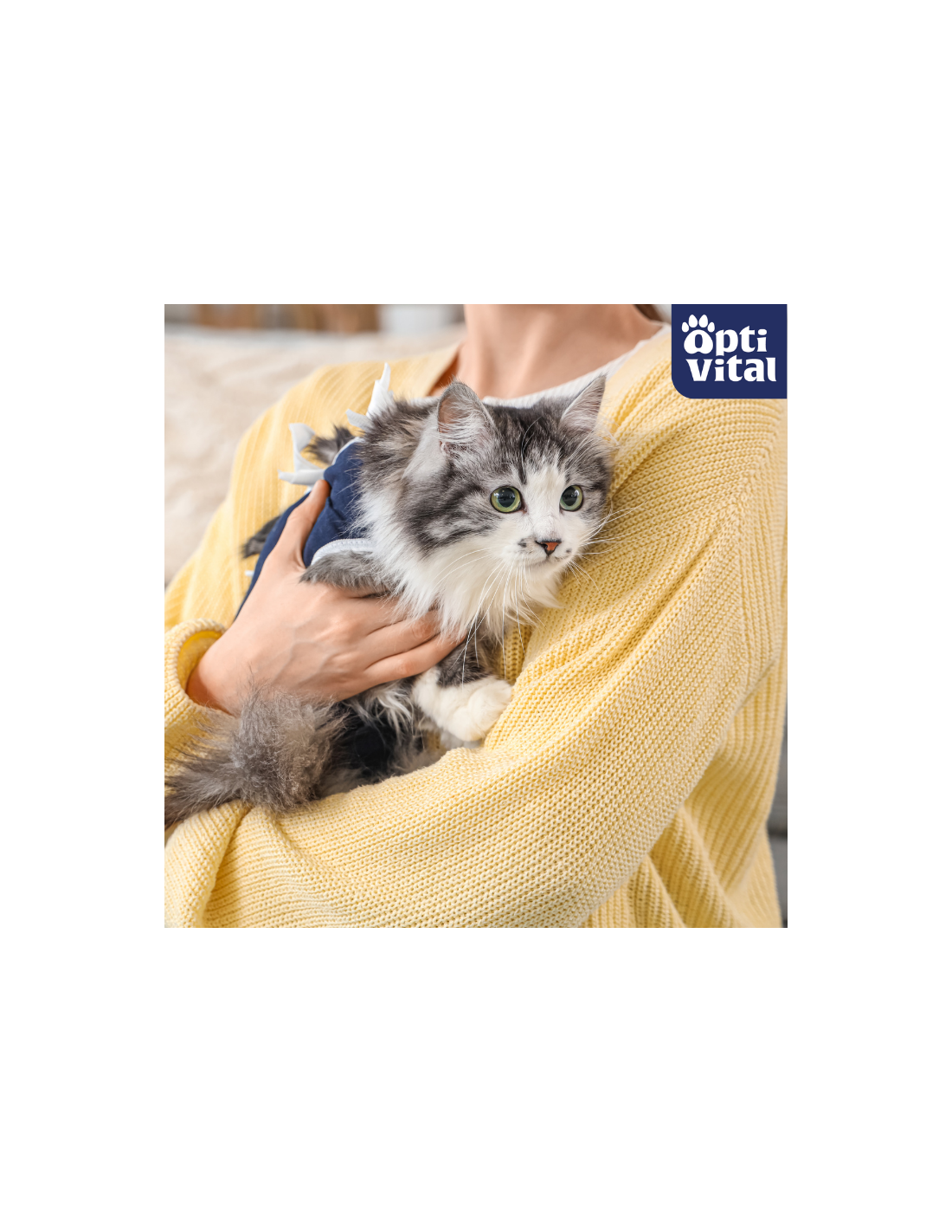 Po sterylizacji organizm kota spala mniej energii, a apetyt często się zwiększa. Jeśli dieta nie jest odpowiednio dobrana, łatwo o nadwagę. OptiVital Sterile ma niższą zawartość tłuszczu i wysokiej jakości białko, dzięki czemu wspiera prawidłową wagę.