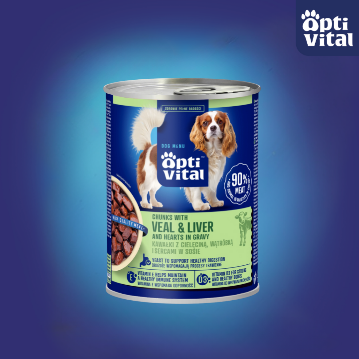 ✔️ 6x Soczyste kawałki z cielęciną, wątróbką i sercami w sosie OptiVital 415 g