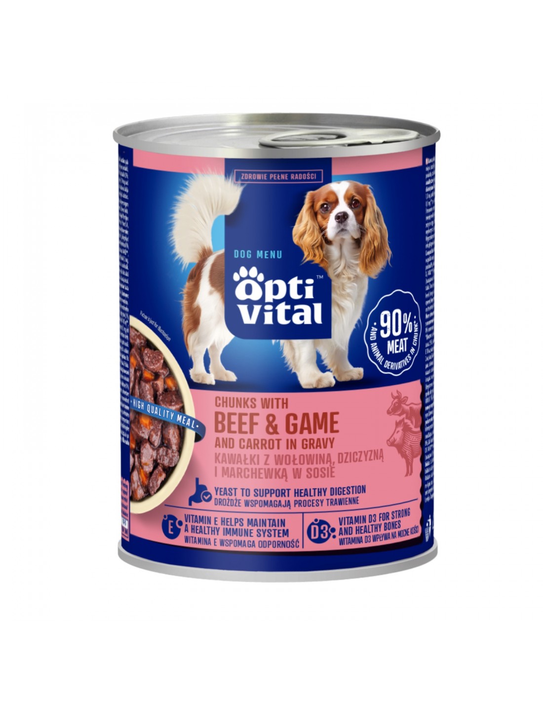 ✔️ 6x Soczyste kawałki z wołowiną oraz dziczyzną i marchewką w sosie OptiVital 415 g