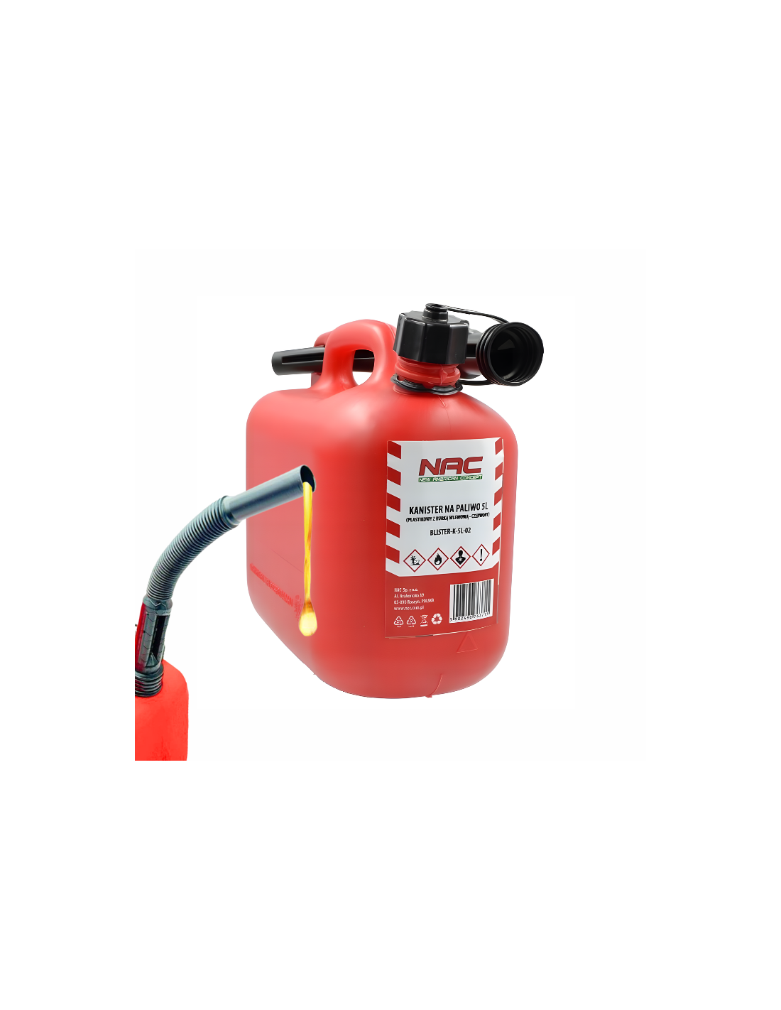 Plastikowy kanister na paliwo, olej z rurką wlewową 5L NAC