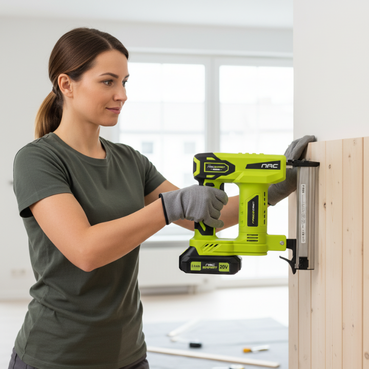 Twoje „must-have” do wykończeń. Gwoździarka NAC SMART mocuje elementy w drewnie szybko i pewnie, bez kabli i bez zamieszania.