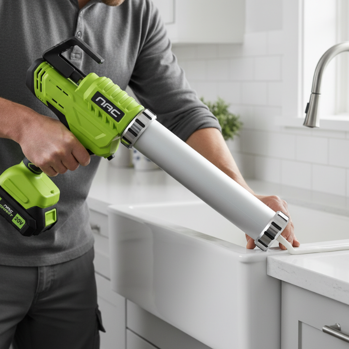 NS-GG-20V-B daje moc i kontrolę, których brakuje w ręcznych wyciskaczach. Pracujesz wygodnie przy silikonie, akrylu i klejach: w łazience, kuchni i na budowie.