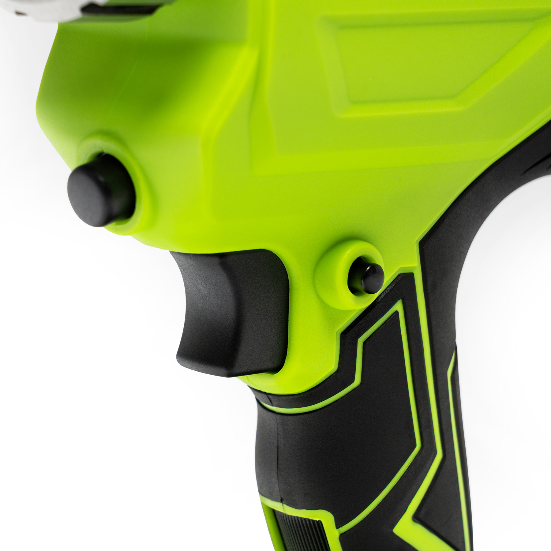 - Funkcje: regulacja prędkości, blokada pracy ciągłej, oświetlenie LED, przycisk zwalniający tłok