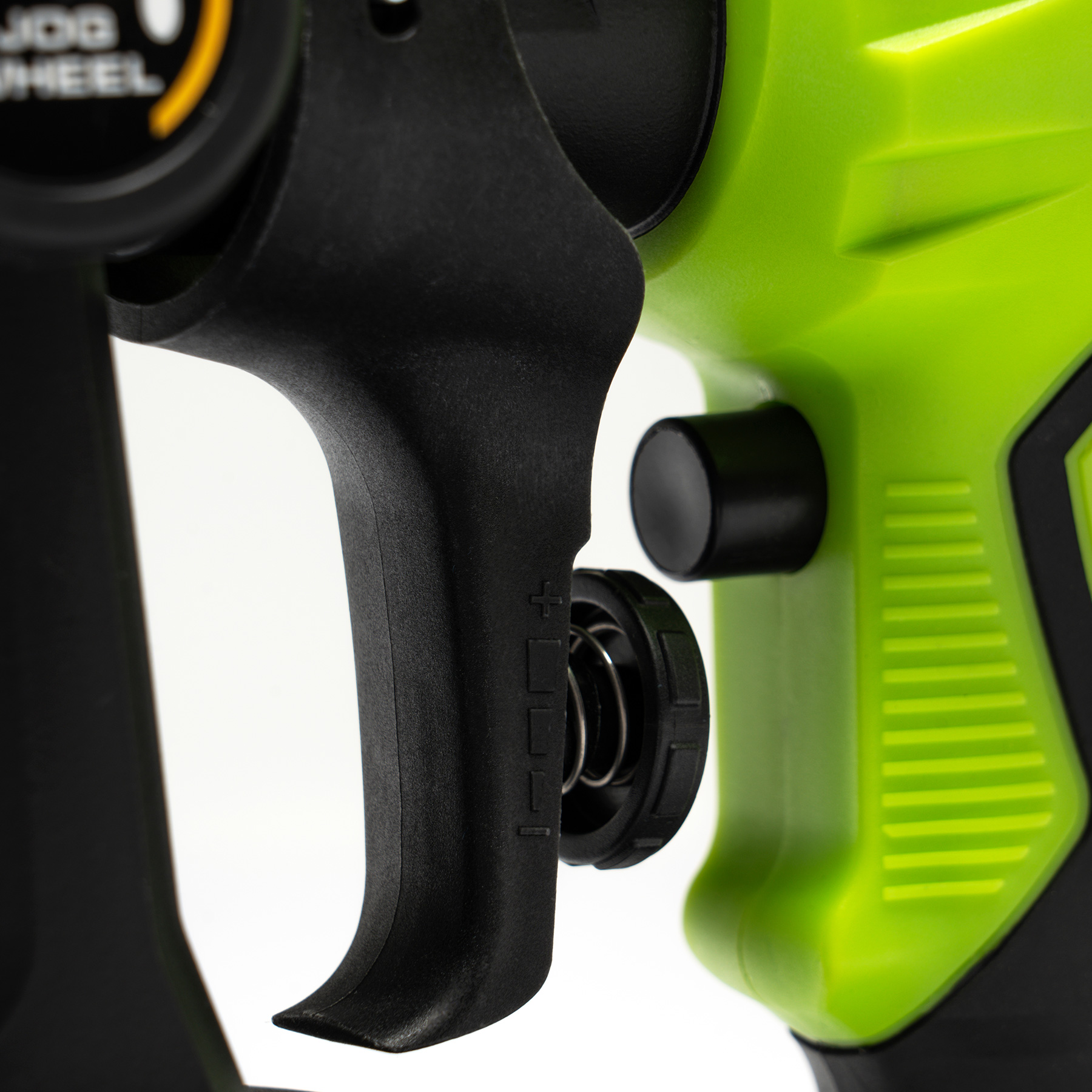 ✔️ Pokrętło regulacji przepływu umożliwia precyzyjne dozowanie farby i pozwala ograniczyć niepotrzebne rozpryski