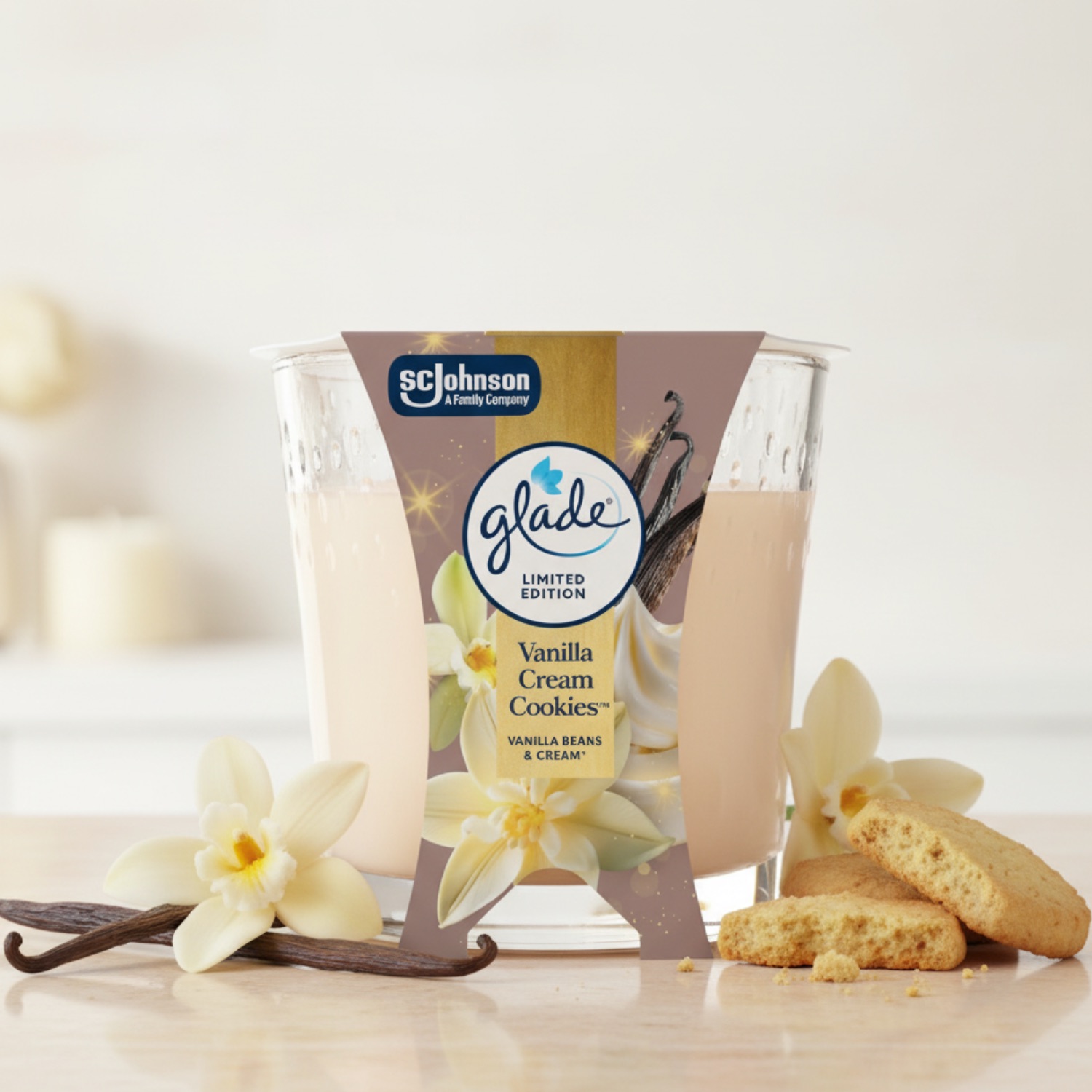 Glade® Vanilla Cream Cookies, świeca zapachowa 112 g