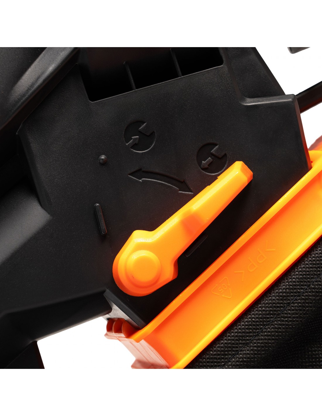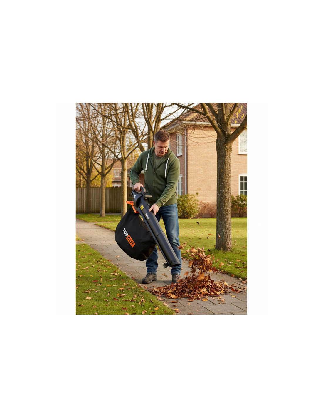 Gdy już zbierzesz liście w jedną dużą stertę czas na drugi krok. Przełącz urządzenie jednym ruchem na tryb odkurzacza i zobacz magię. Maszyna nie tylko wciągnie wszystkie liście do pojemnego, 45-litrowego worka, ale także je rozdrobni. Wytrzymały mechanizm rozdrabniający redukuje ich objętość w stosunku 10:1. Oznacza to, że zamiast wynosić dziesięć worków, wynosisz tylko jeden.