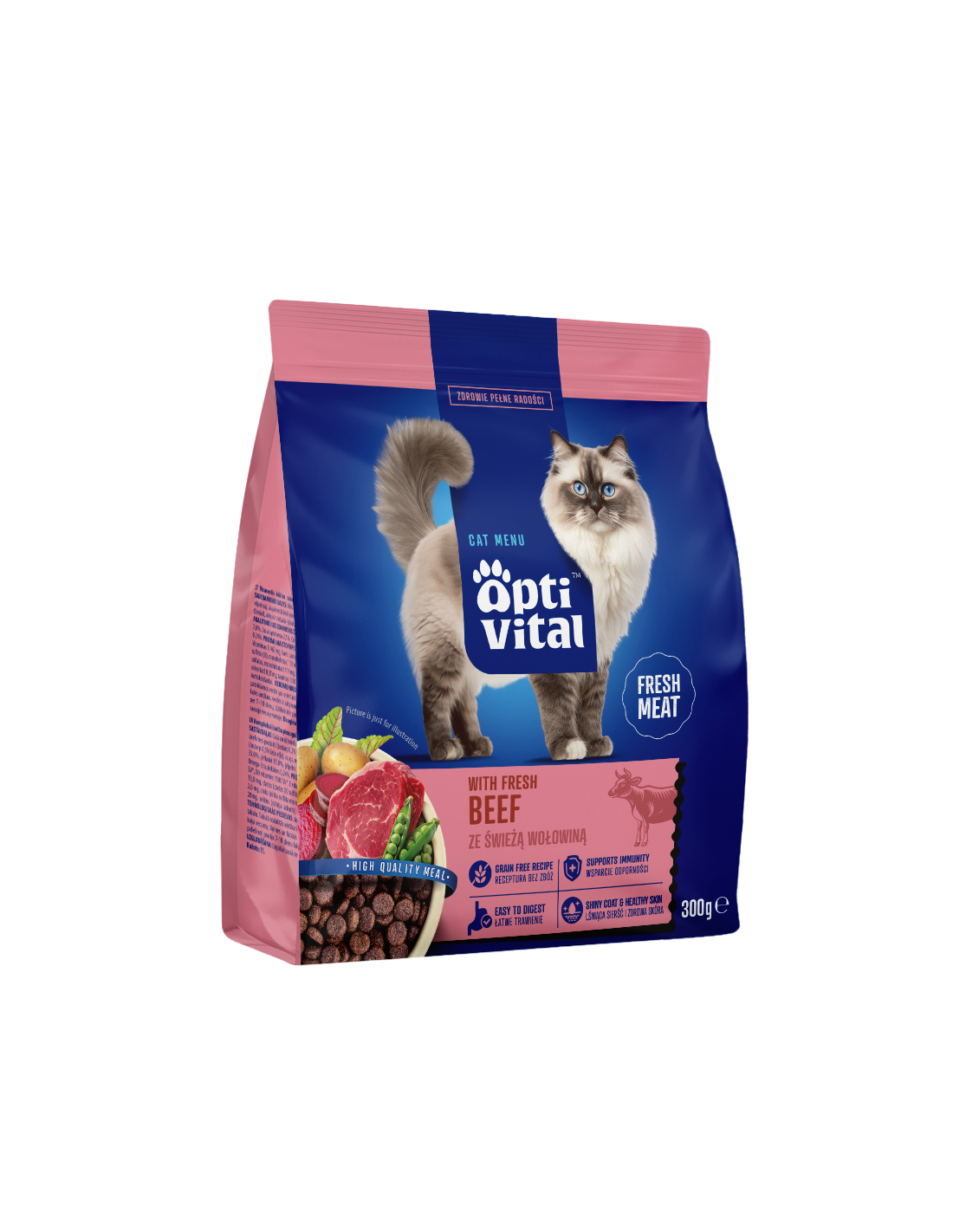 OptiVital z wołowiną to pełnoporcjowa karma sucha, która dostarcza wszystkiego, czego potrzebuje dorosły kot. Wysoka zawartość białka pochodzenia zwierzęcego wspiera silne mięśnie i daje energię, a starannie dobrane witaminy i minerały dbają o zdrowie od środka.