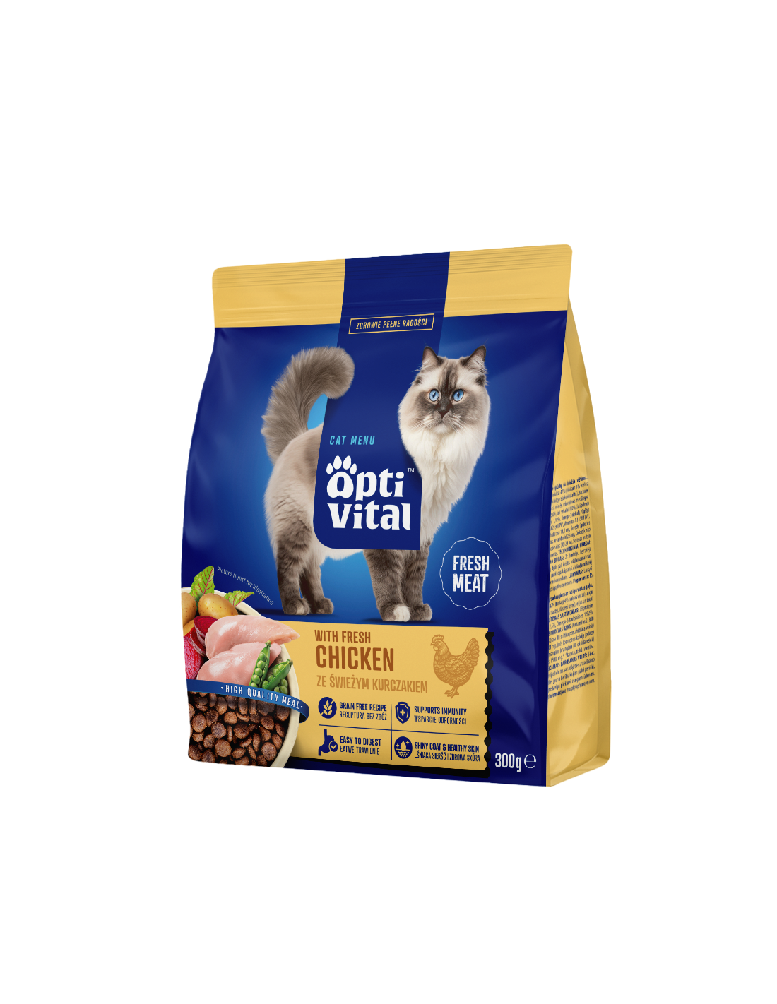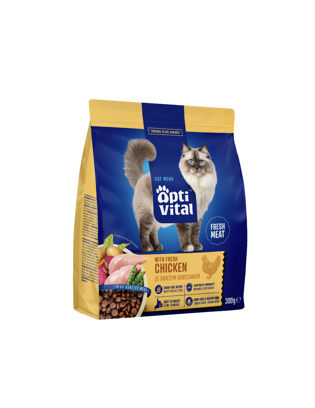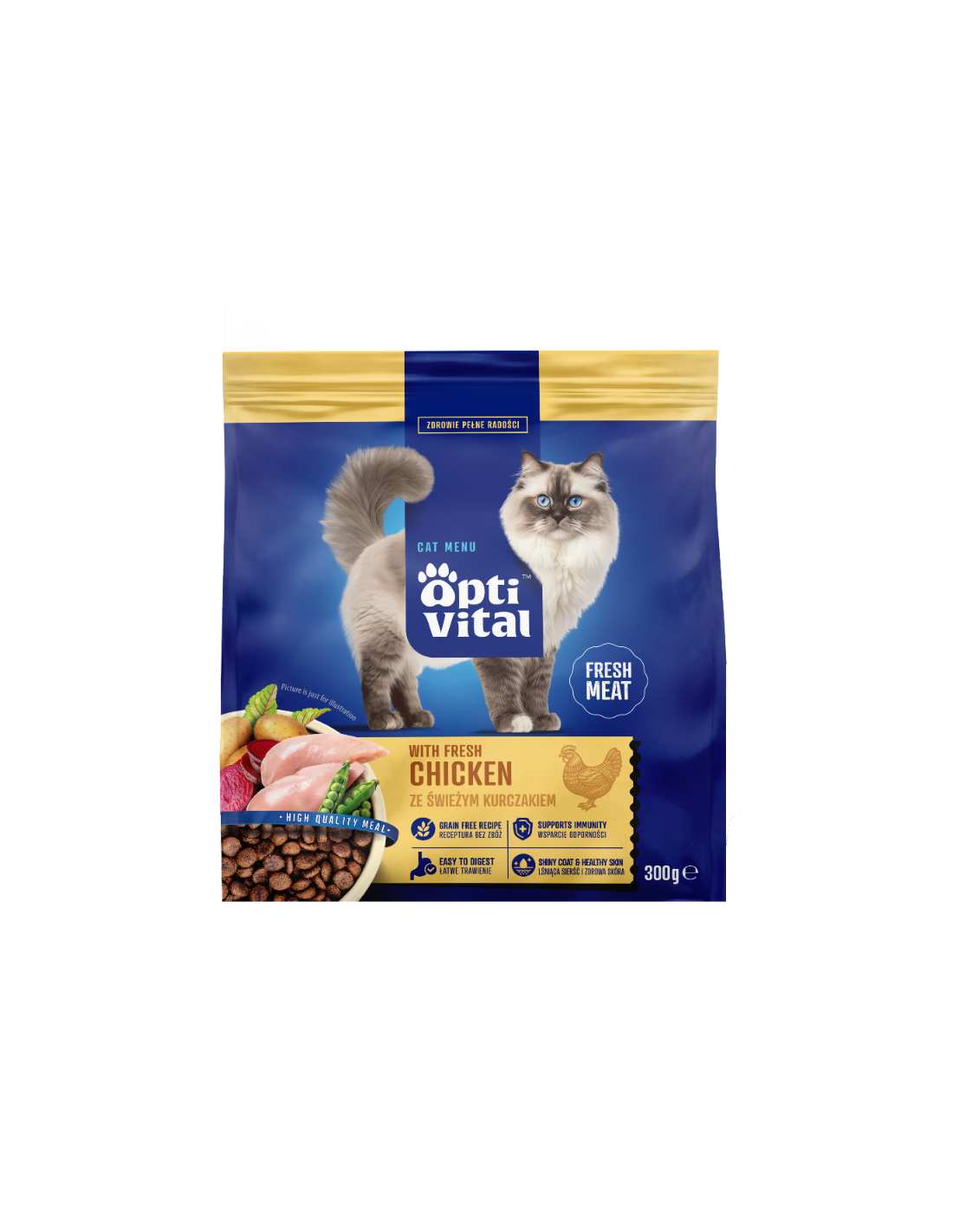 OptiVital z kurczakiem to pełnoporcjowa karma sucha, która dostarcza wszystkiego, czego potrzebuje dorosły kot. Wysoka zawartość białka pochodzenia zwierzęcego wspiera silne mięśnie i daje energię, a starannie dobrane witaminy i minerały dbają o zdrowie od środka.