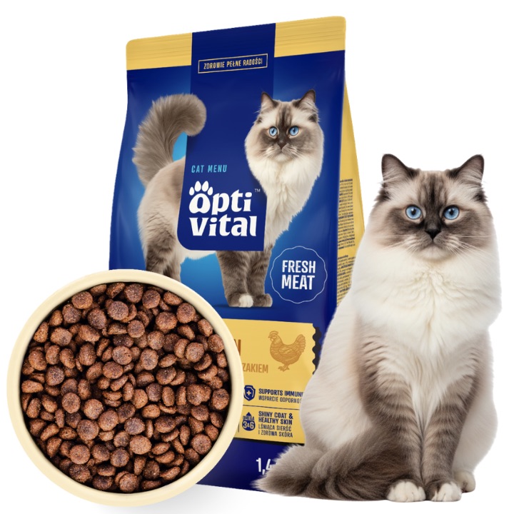 OPTIVITAL Sucha karma bezzbożowa dla dorosłych kotów ze świeżym kurczakiem 1,4 kg