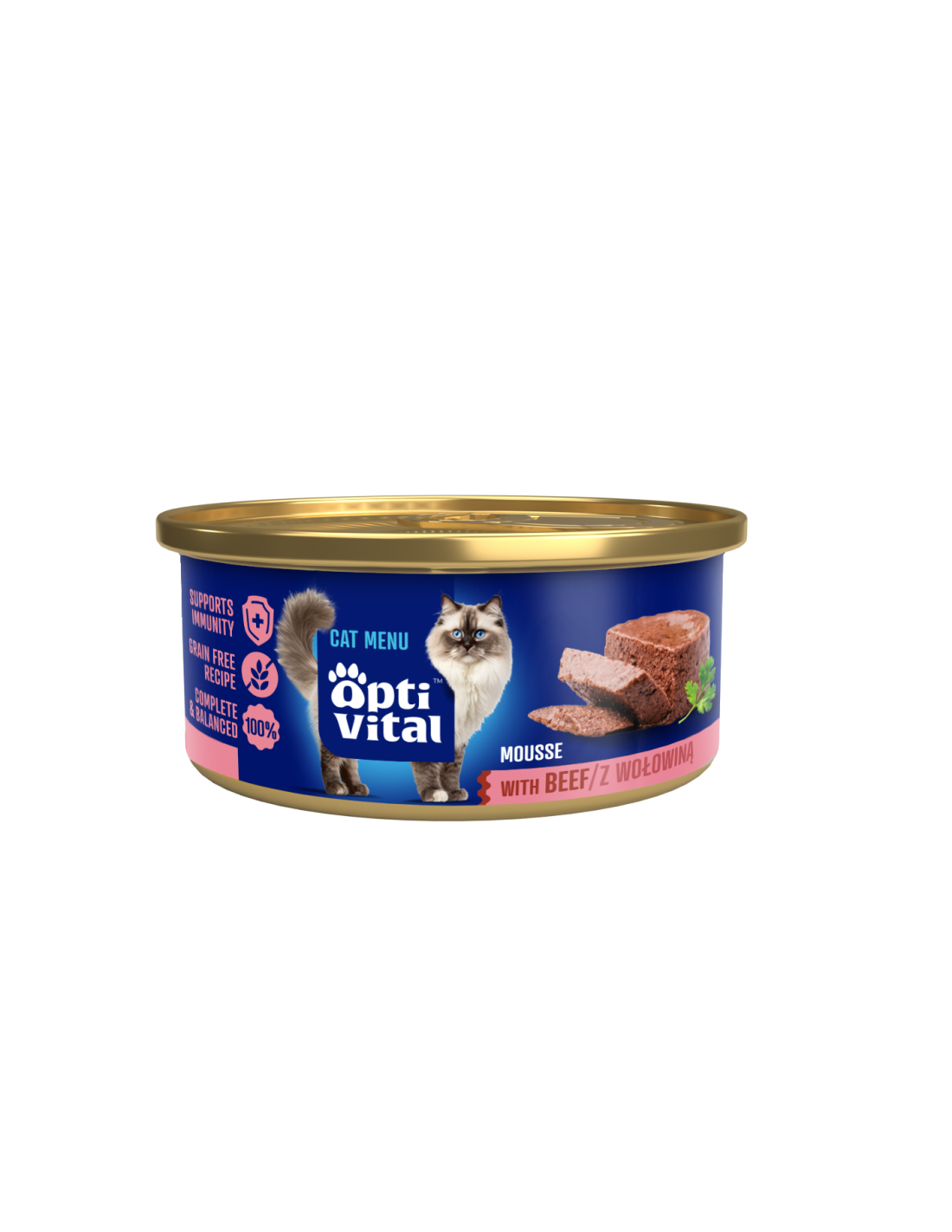 Mus OptiVital ma delikatną, puszystą konsystencję, która zwiększa smakowitość i ułatwia spożycie posiłku. Jest lekkostrawny i doskonale sprawdza się u kotów, które mają trudności z gryzieniem lub preferują łagodną, miękką teksturę.