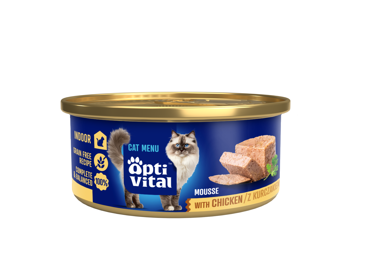 Mus OptiVital ma delikatną, puszystą konsystencję, która zwiększa smakowitość i ułatwia spożycie posiłku. Jest lekkostrawny i doskonale sprawdza się u kotów, które mają trudności z gryzieniem lub preferują łagodną, miękką teksturę.