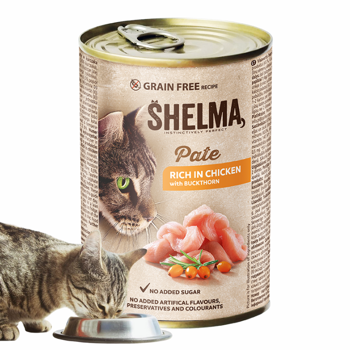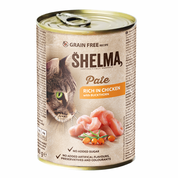 SHELMA mokra karma pasztet dla kota z kurczakiem i rokitnikiem 400g