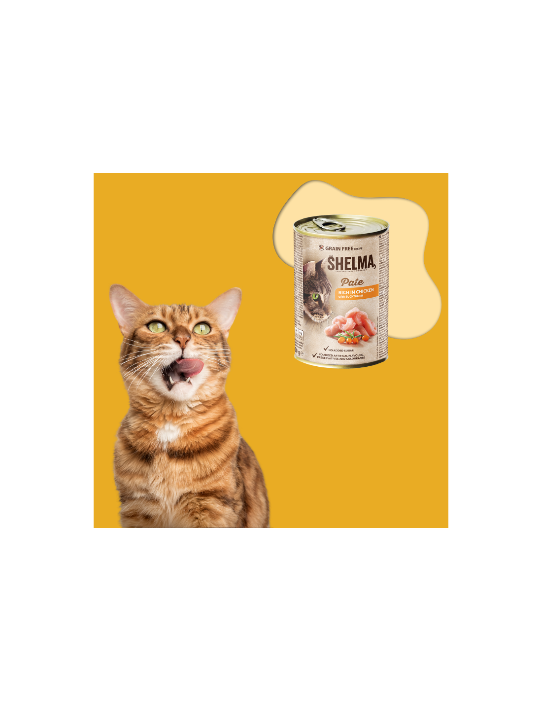 Podaruj swojemu kotu aksamitny pasztet SHELMA, który łączy w sobie bogactwo smaku kurczaka z naturalną mocą rokitnika. To pełnoporcjowa, bezzbożowa uczta stworzona z myślą o witalności i doskonałym samopoczuciu Twojego mruczka.