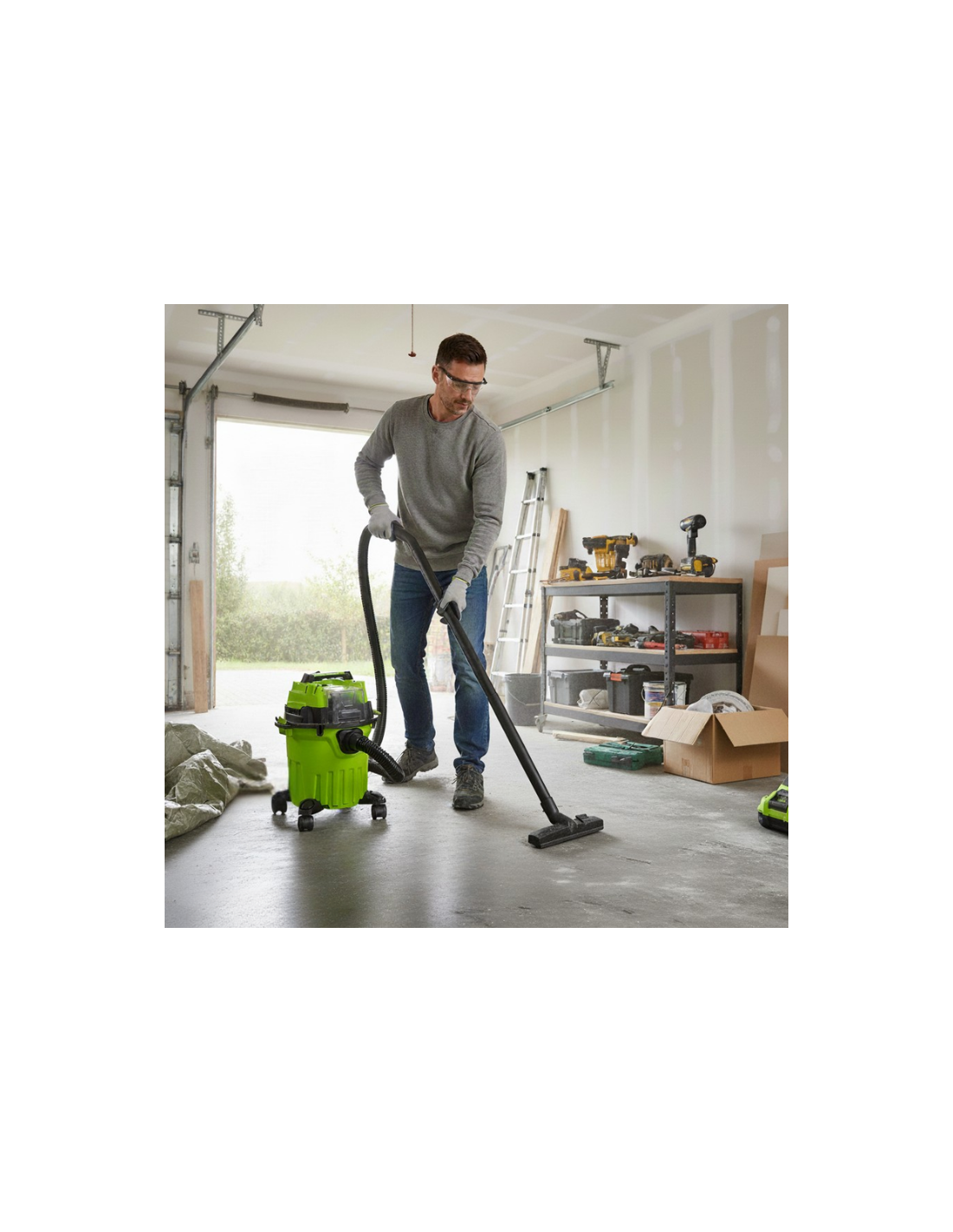 Profesjonalny warsztat to czysty warsztat. NS-IVC-20V-B to akumulatorowy odkurzacz warsztatowy, który ogarnia pył po szlifowaniu, trociny po cięciu, gruz po wierceniu, a także wodę z zalanych miejsc.