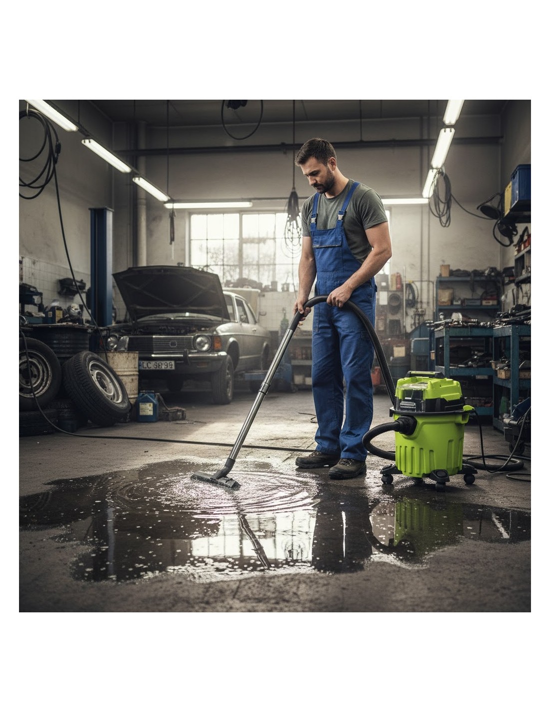 Profesjonalny warsztat to czysty warsztat. NS-IVC-20V-B to akumulatorowy odkurzacz warsztatowy, który ogarnia pył po szlifowaniu, trociny po cięciu, gruz po wierceniu, a także wodę z zalanych miejsc.