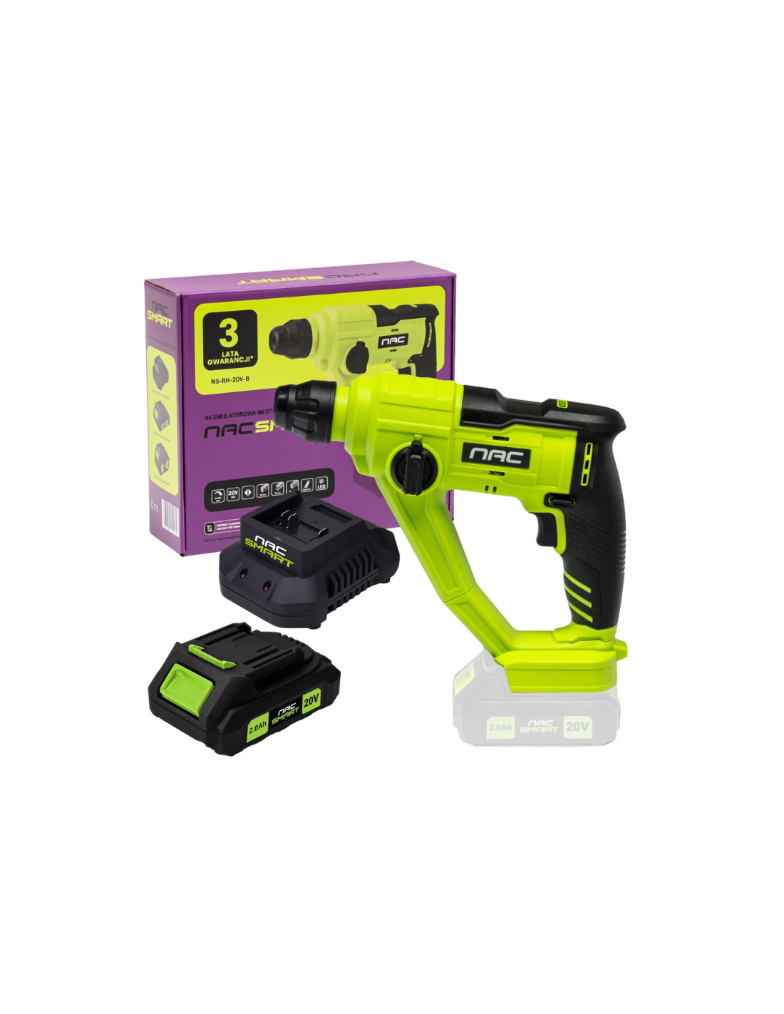 Mocna młotowiertarka udarowa 1,5 J 20 V SDS + LED NAC SMART NS-RH-20V-B
